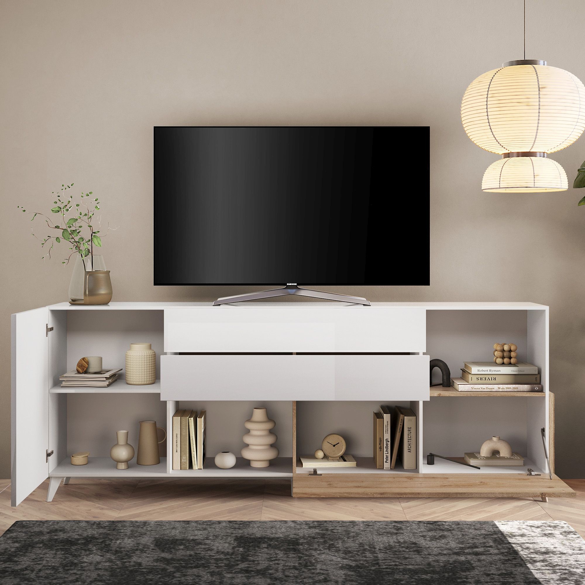 Madia 240×94×42 colore bianco e rovere chiaro per zona giorno moderna - Riviera
