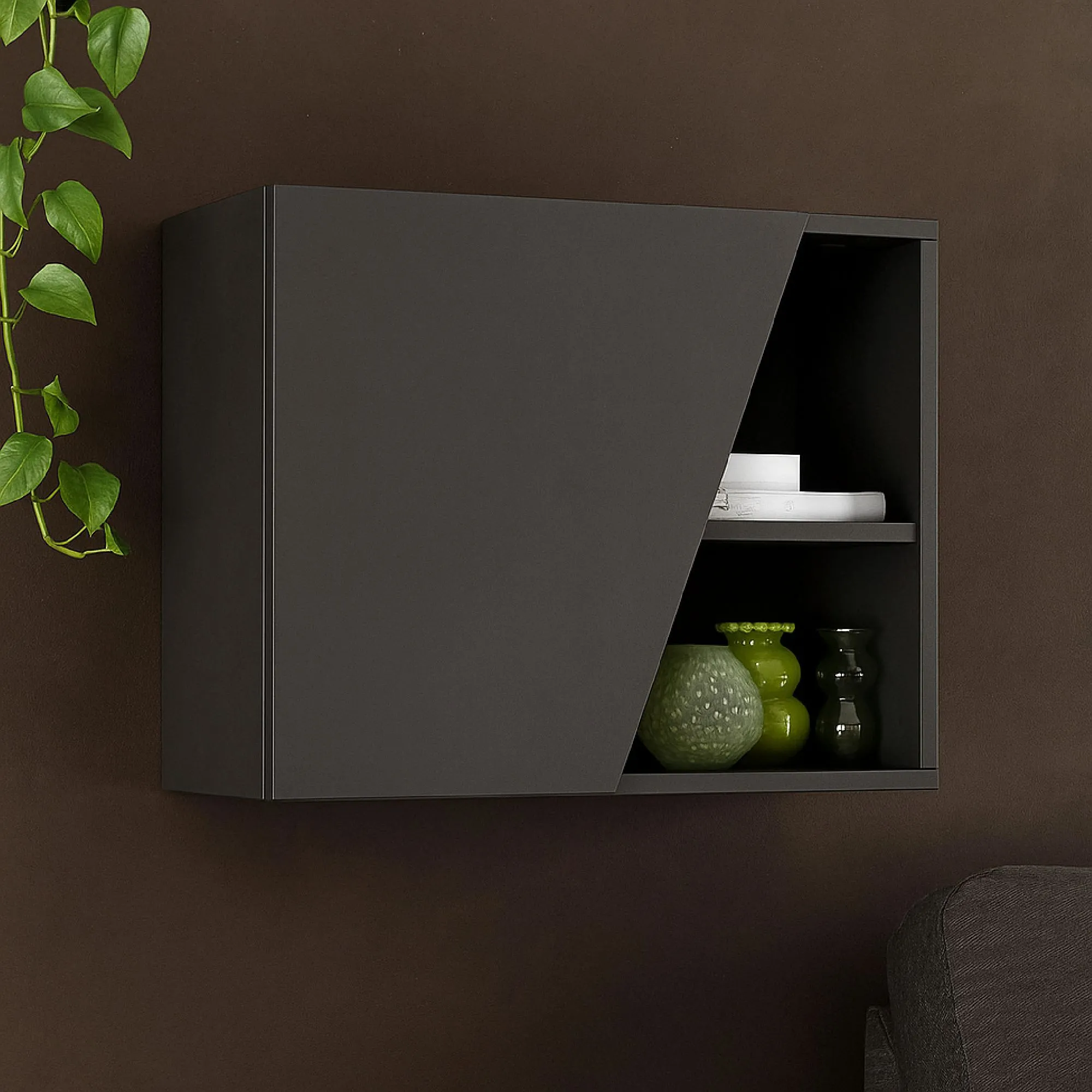 La finitura in Lava dona carattere e contemporaneità agli spazi, mentre il profilo sagomato aggiunge un dettaglio di design che rende il pensile distintivo, perfetto per chi cerca uno stile moderno con personalità. Utilizzabile singolarmente o in composizioni modulari, si adatta con facilità a diverse esigenze di arredo.