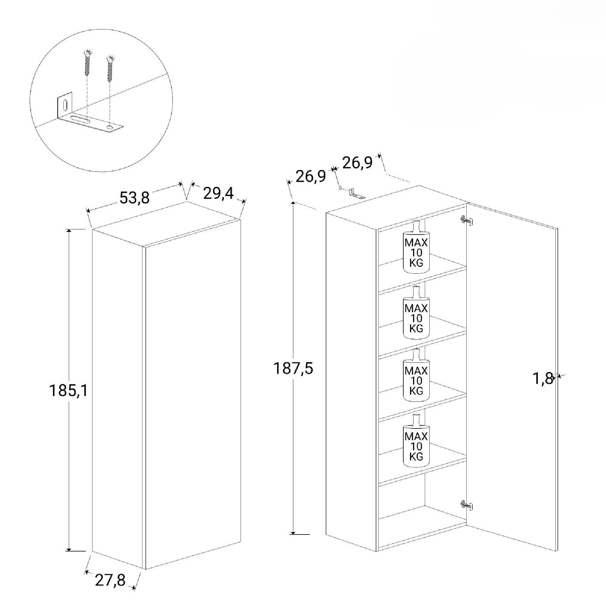 La colonna larga ETERNITY è la soluzione perfetta per chi desidera aggiungere ordine e stile a soggiorni, camere e ingressi. Con le sue dimensioni di 54x30x186 cm, offre un ampio spazio contenitivo per riporre libri, decorazioni e oggetti, mantenendo l'ambiente organizzato e luminoso.