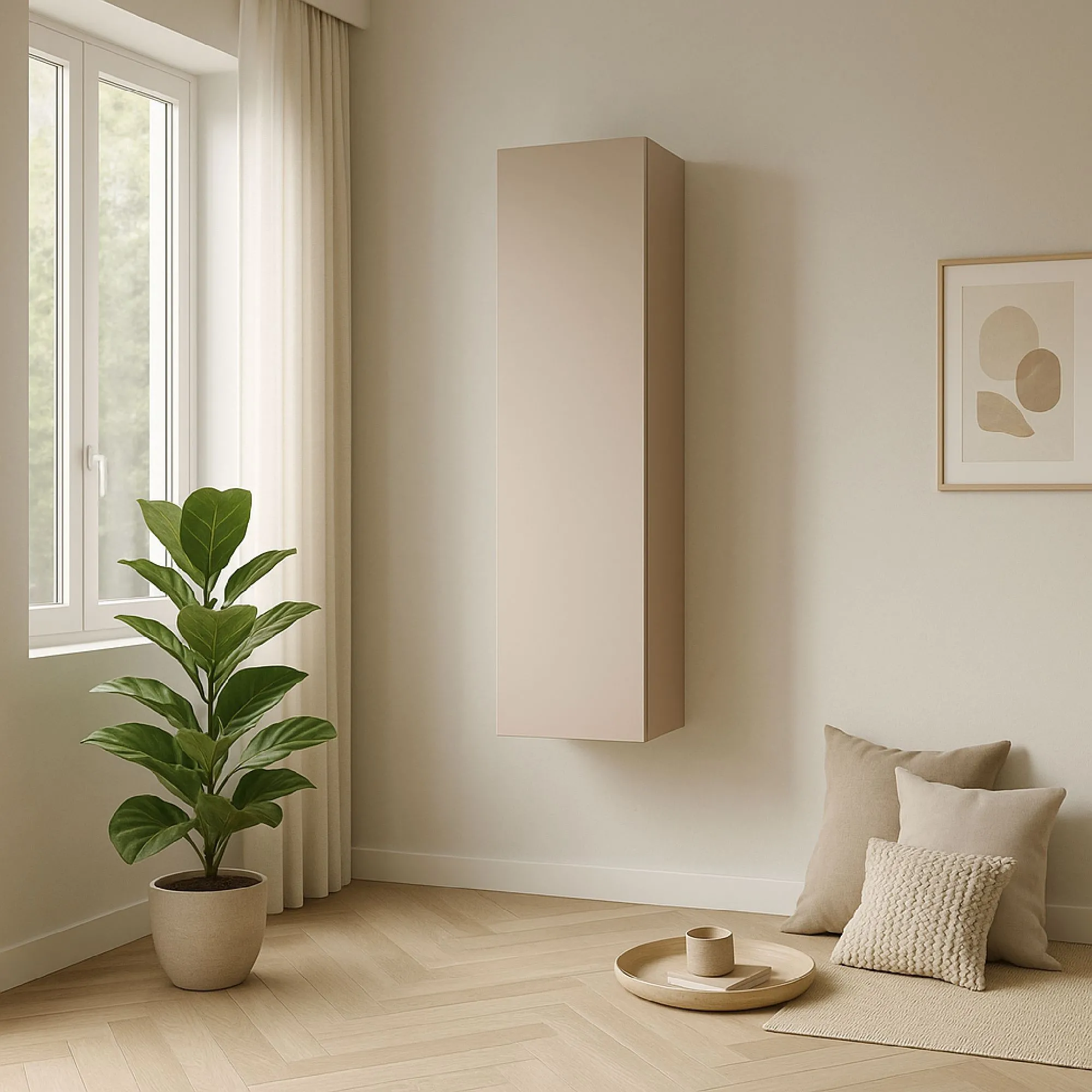 Elemento verticale 29×30×138 cashmere con anta liscia e finitura opaca - ETERNITY