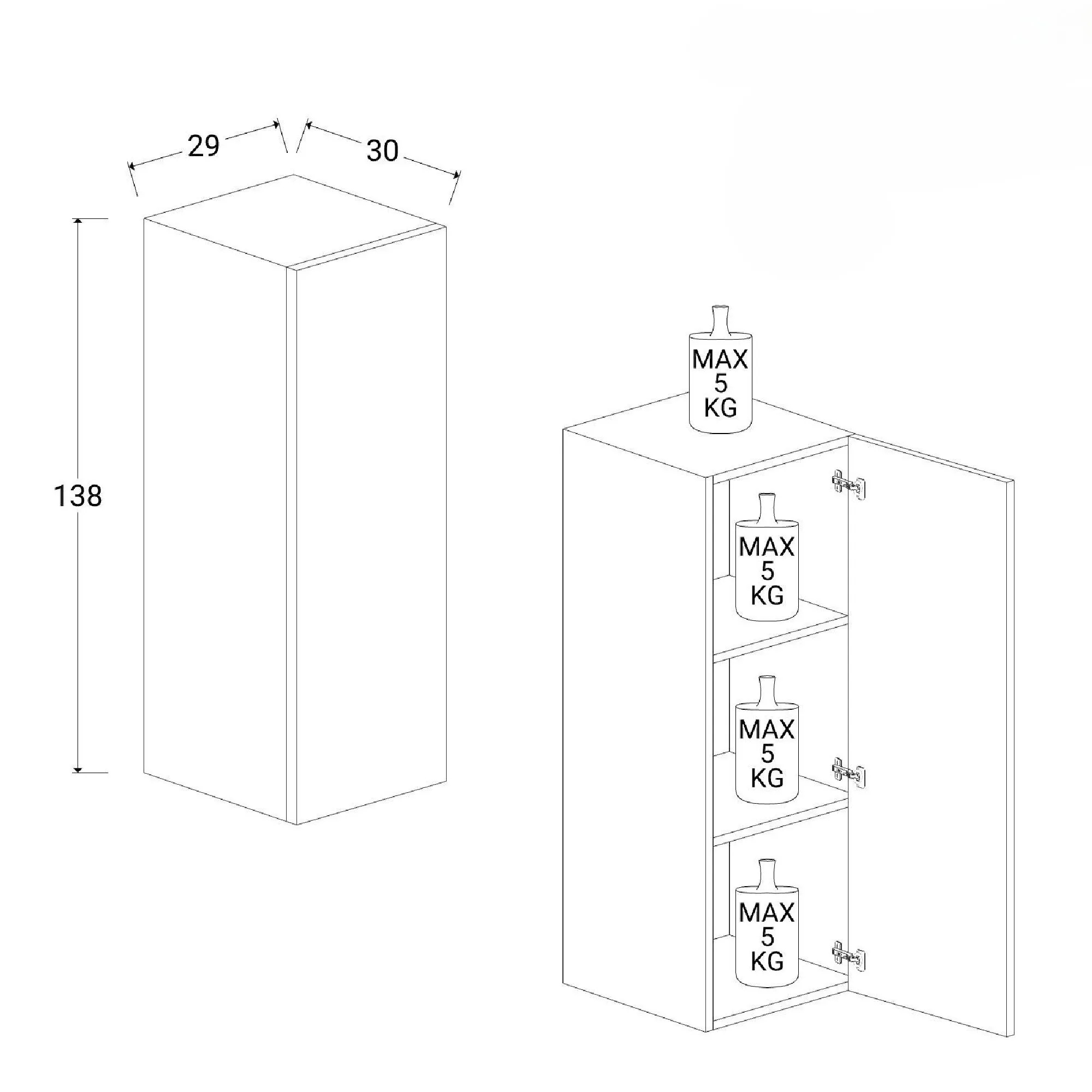 - L.29 x P.30 x H.138 cm