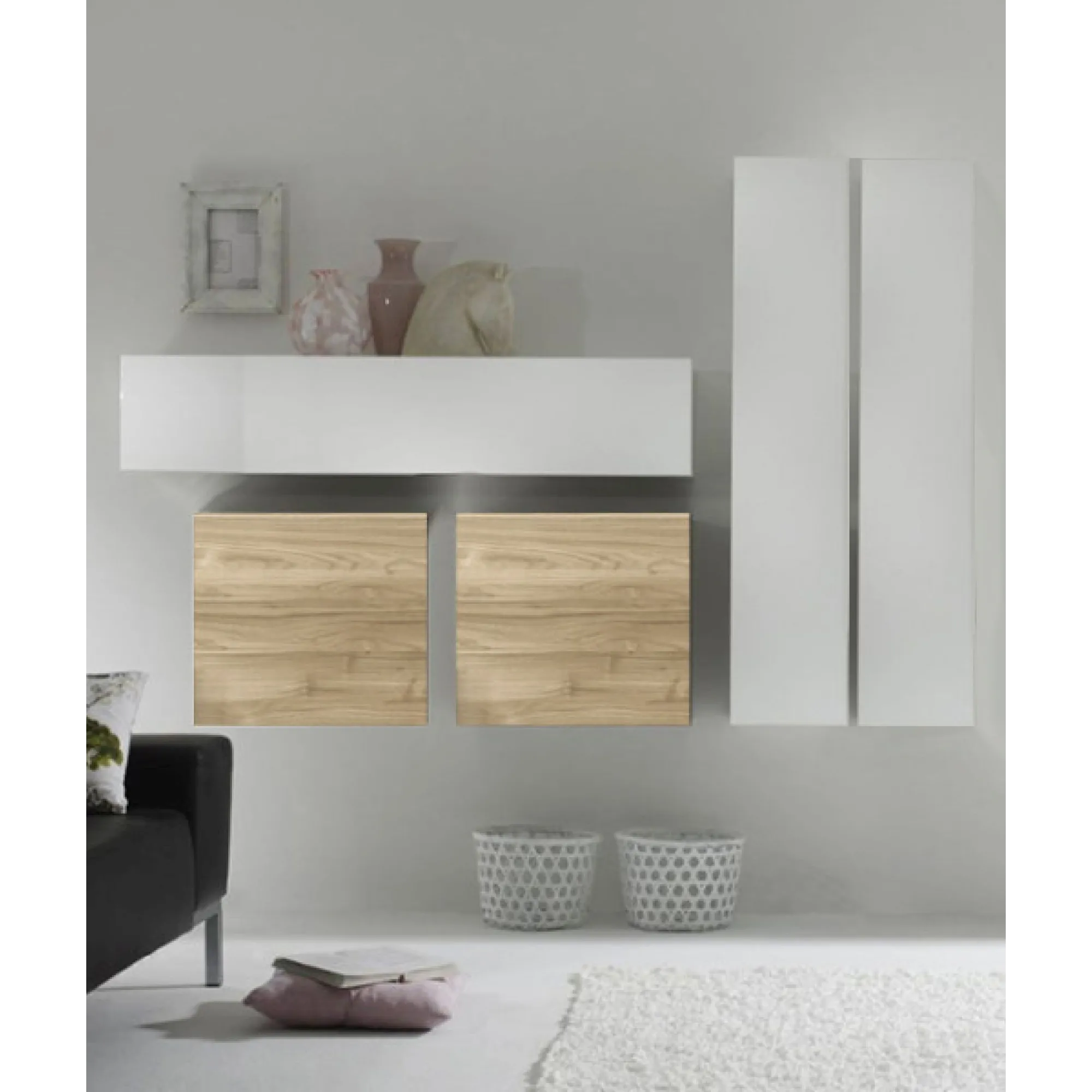 Parete Attrezzata 220x169 cm Bianco Laccato Lucido e Noce Stelvio Sistema di Aggancio Regolabile - Infinity