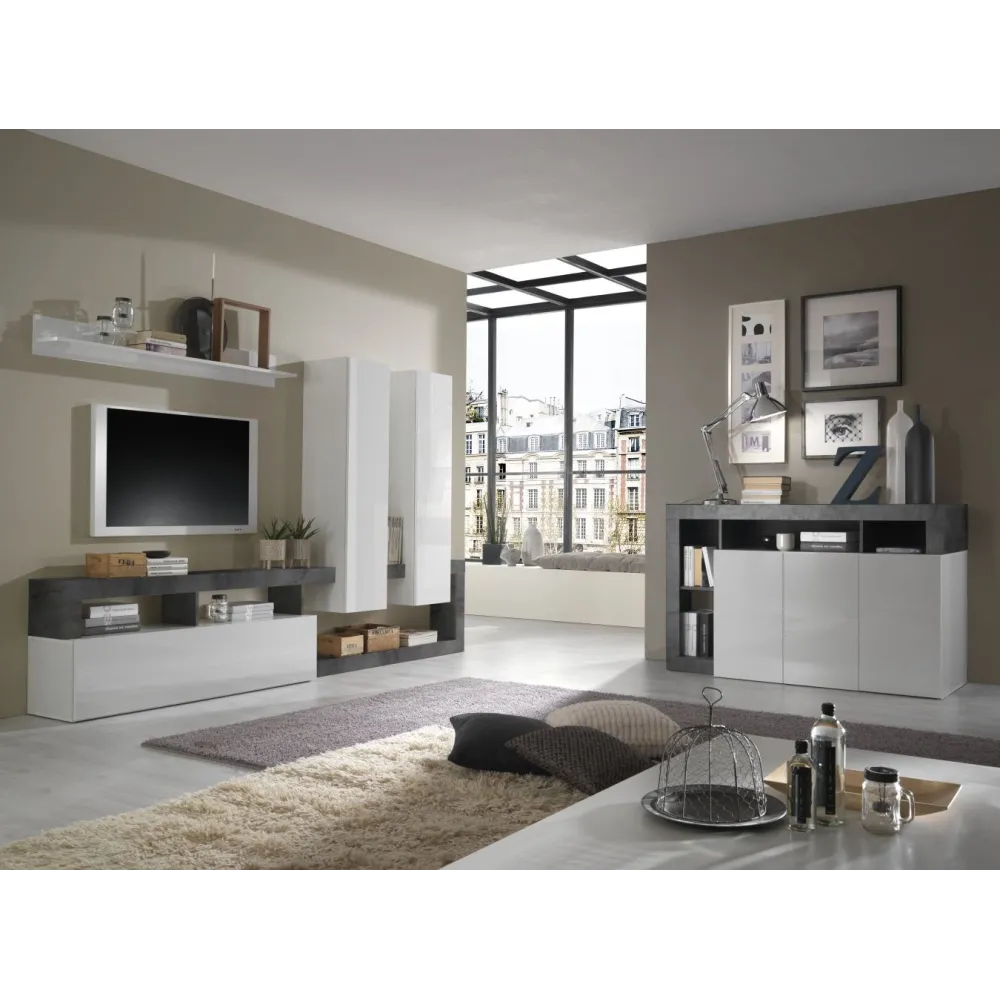 Scoprite la Composizione da Soggiorno HAMBURG, una soluzione d'arredo che unisce design innovativo e funzionalità, perfetta per arricchire il vostro soggiorno con eleganza e praticità. Questa composizione combina l'estetica moderna del Bianco Laccato Lucido con la finitura Ossido, offrendo ampi spazi contenitivi per ogni esigenza.