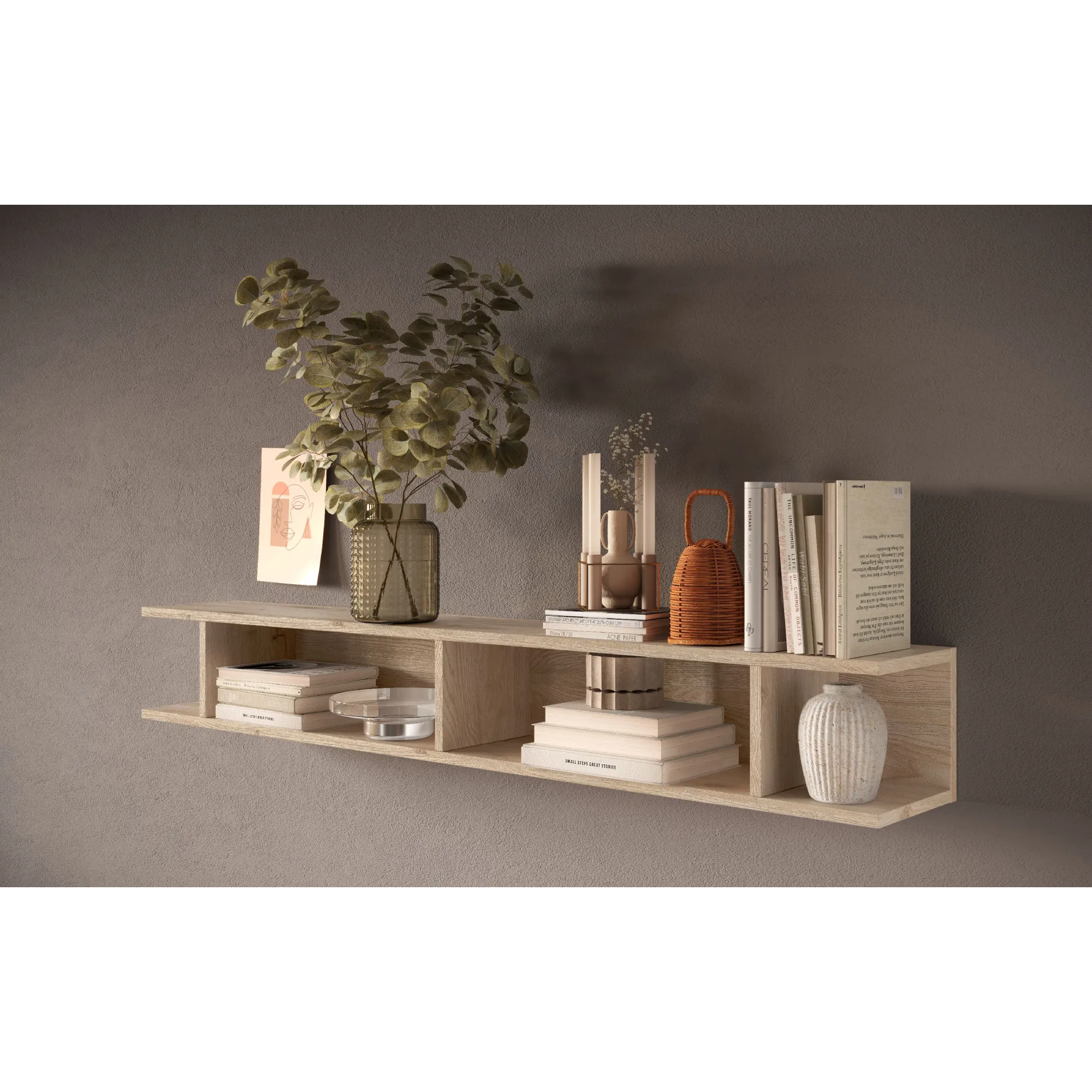 La mensola ETERNITY con finitura in Cadiz effetto legno è ideale per chi desidera un arredo funzionale e di carattere. Le dimensioni di 138x21x2,7 cm offrono spazio utile per libri, decorazioni e oggetti, mantenendo ordine e stile.