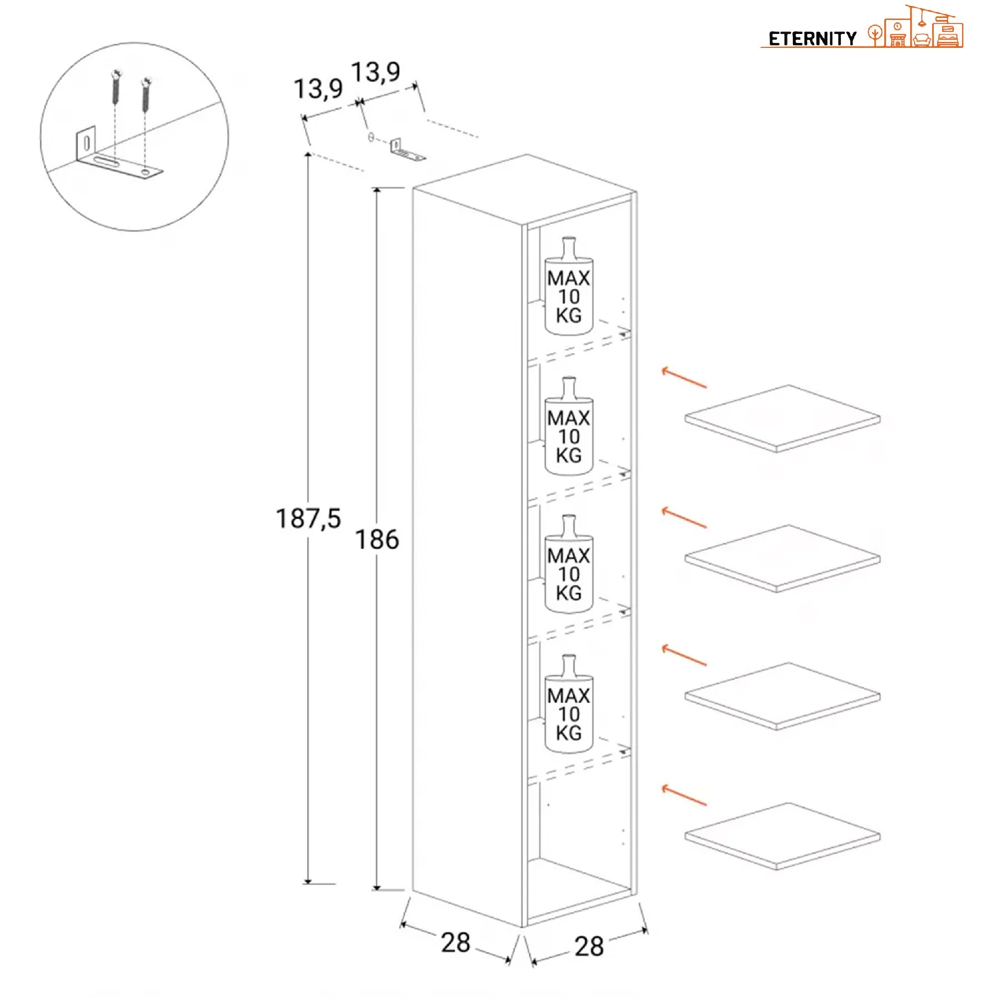 La raffinata finitura Ardesia materica esalta il carattere del mobile, mentre la struttura stretta lo rende ideale per ambienti dove ogni centimetro conta. Perfetto per riporre libri, oggetti decorativi o accessori, è una scelta versatile e pratica per il soggiorno.