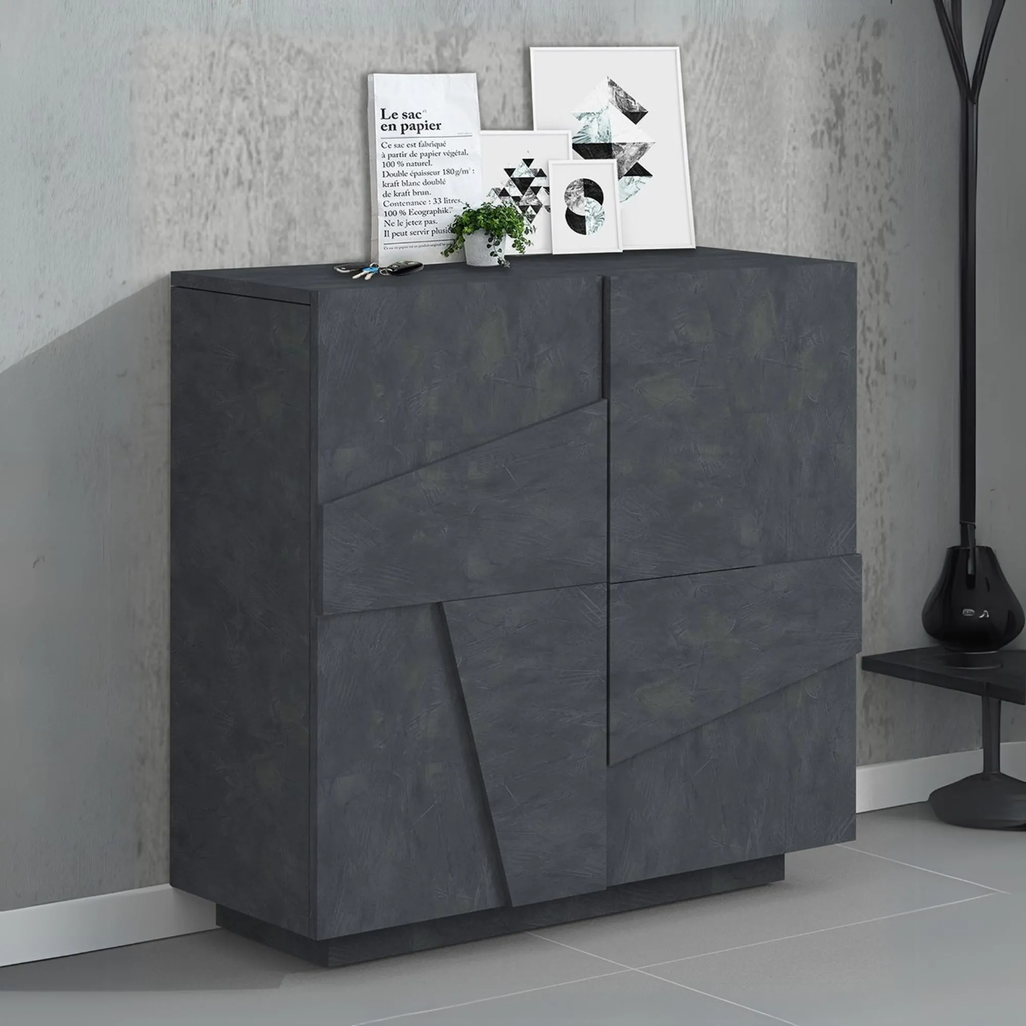 La scarpiera moderna WEB, Made in Italy, ha 2 ante effetto Ardesia e tre ripiani interni. Senza maniglie, con inserti in rilievo, offre un design elegante e contemporaneo. Disponibile in Bianco Laccato Lucido, Ardesia e Cemento Bronx, si adatta a vari ambienti. Misura 81x86x38 cm e viene spedita smontata con istruzioni di montaggio. Perfetta per un ingresso moderno e funzionale.