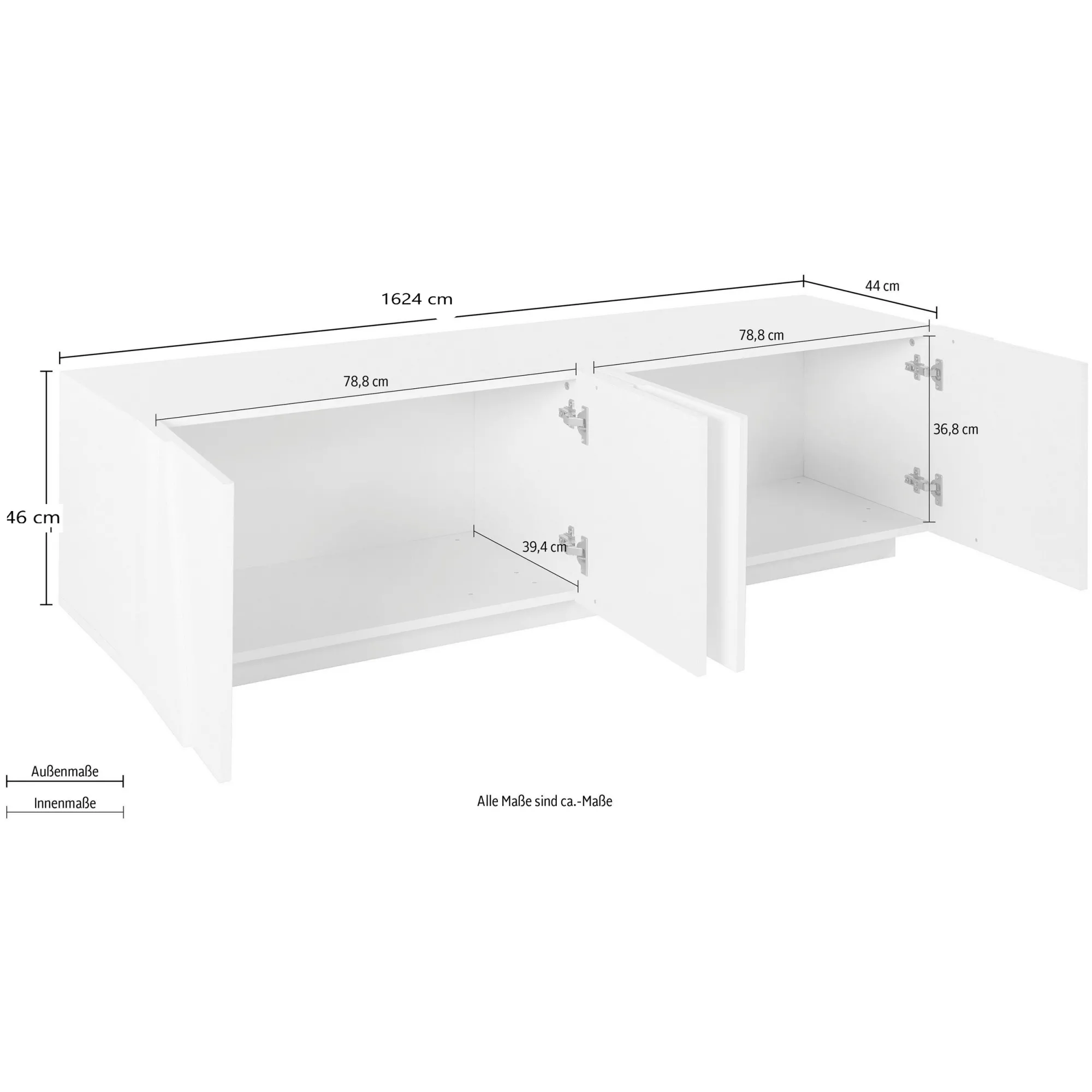 La madia moderna WEB è un mobile versatile, ideale come Porta TV, con 4 ante e ripiani centrali per organizzare oggetti. Ha uno zoccolo per stabilità, ante battenti senza maniglie e un design moderno. Disponibile in Bianco Laccato Lucido, Ardesia e Cemento Bronx, è perfetta per ambienti contemporanei. Made in Italy, viene spedita smontata con istruzioni di montaggio. Dimensioni: L.162,4 x H.46 x P.44,2 cm.