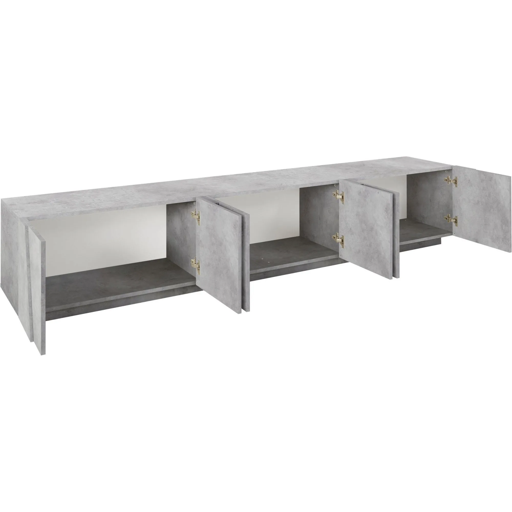Porta TV 243,6x46x44,2 cm Finitura Cemento Design Moderno con 6 Ante e Ripiani - Web