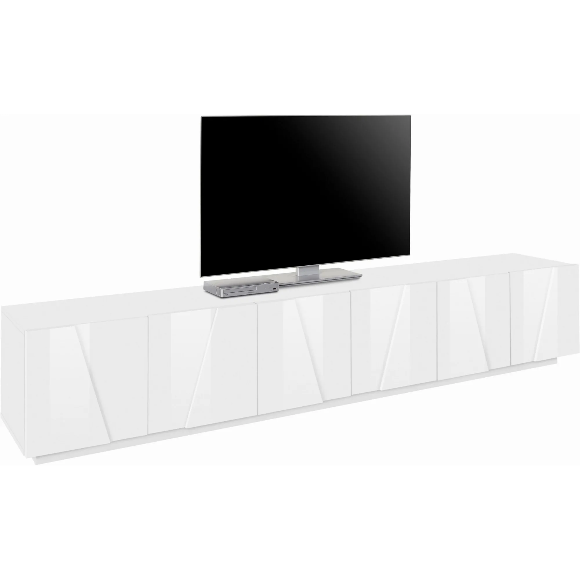 Porta TV 180x40x75 Bianco Laccato Lucido 6 Ante Design Moderno - Web