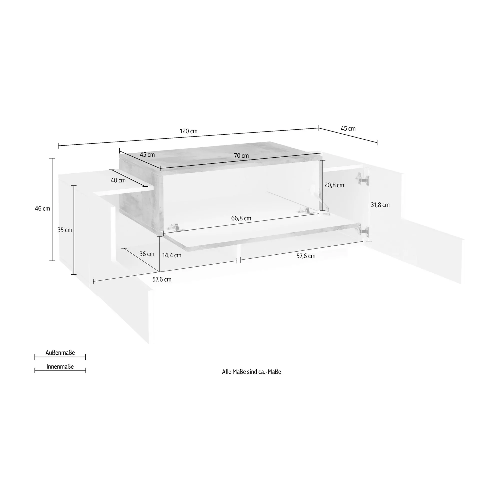 - Dimensioni: L.120 x H.46 x P.45 cm