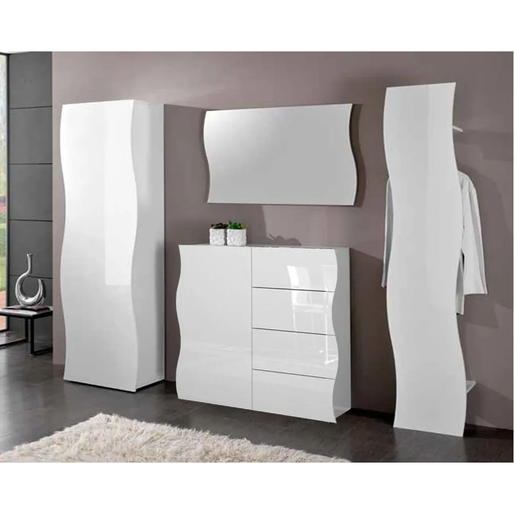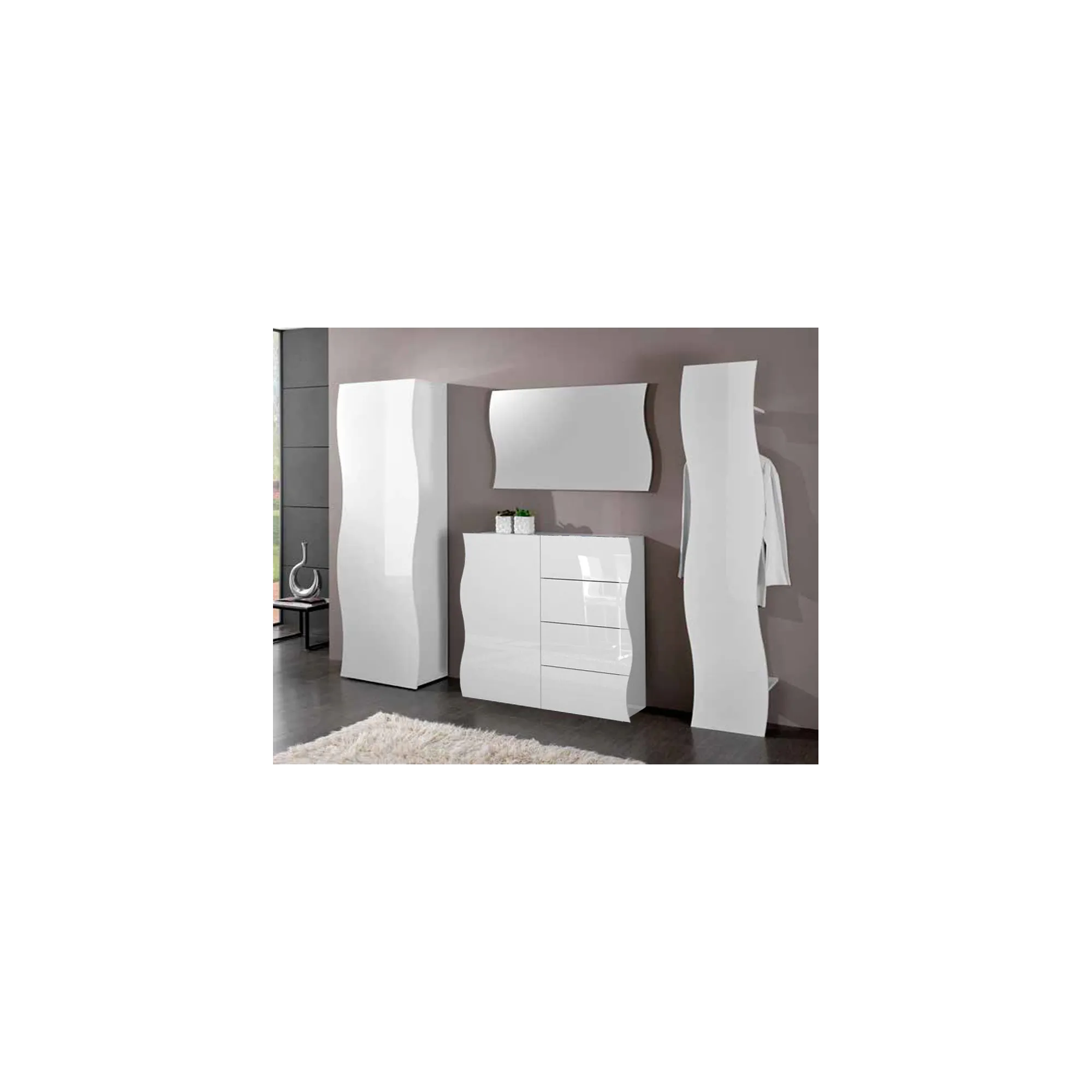 Composizione Ingresso 234x39,5x187 cm Bianco Laccato Lucido Design Moderno Frontali Ondulati - Mare