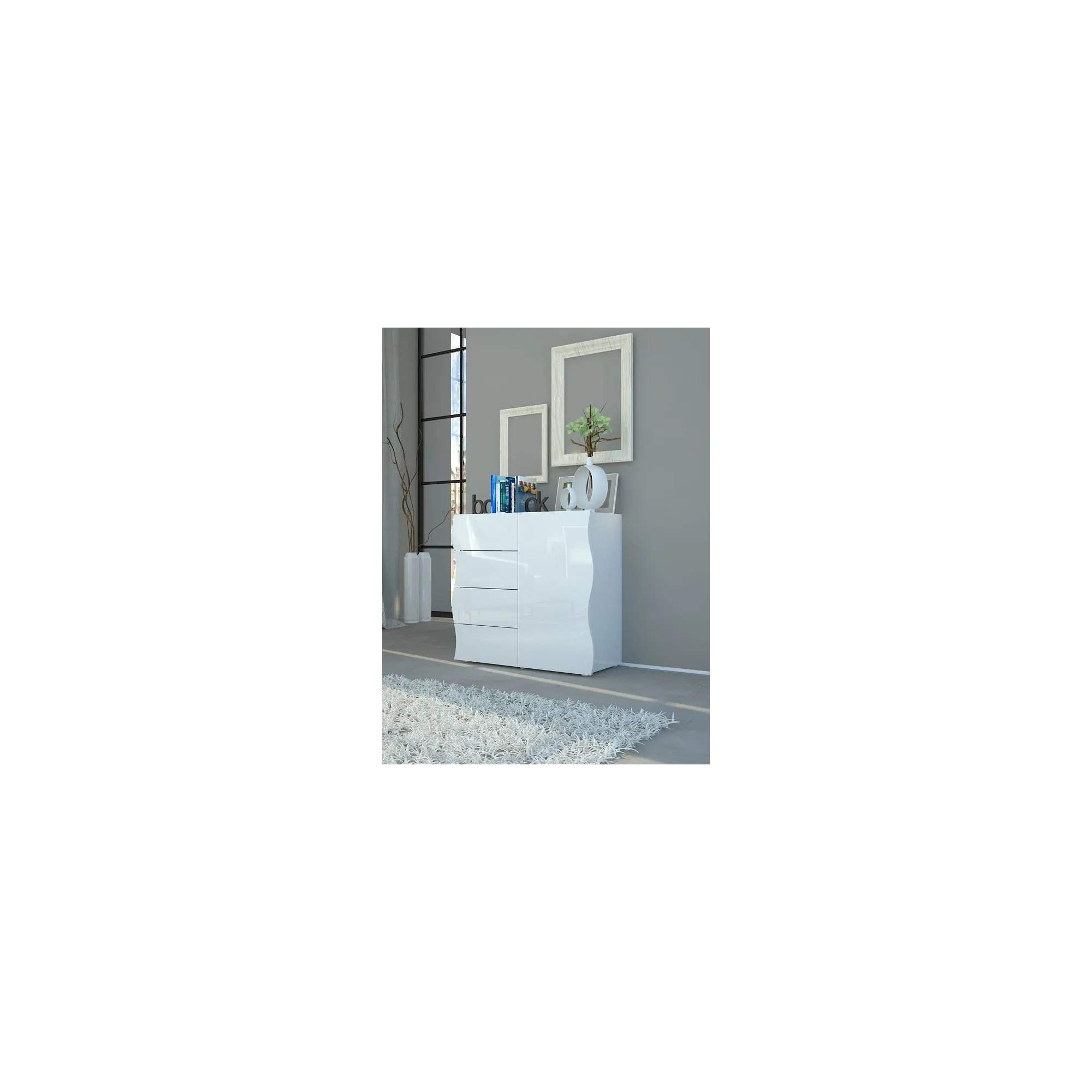 La Composizione per Ingresso Mare è la scelta ideale per chi desidera un arredamento moderno e di design. Composta da uno specchio, una credenza con un'anta e quattro cassetti, un appendiabiti e un guardaroba, tutti in elegante Bianco Laccato Lucido, questa composizione dona un tocco di grinta e stile a qualsiasi ingresso. Il suo design distintivo, caratterizzato da frontali con un motivo ondulatorio che richiama l'effetto delle onde, crea un forte impatto visivo.