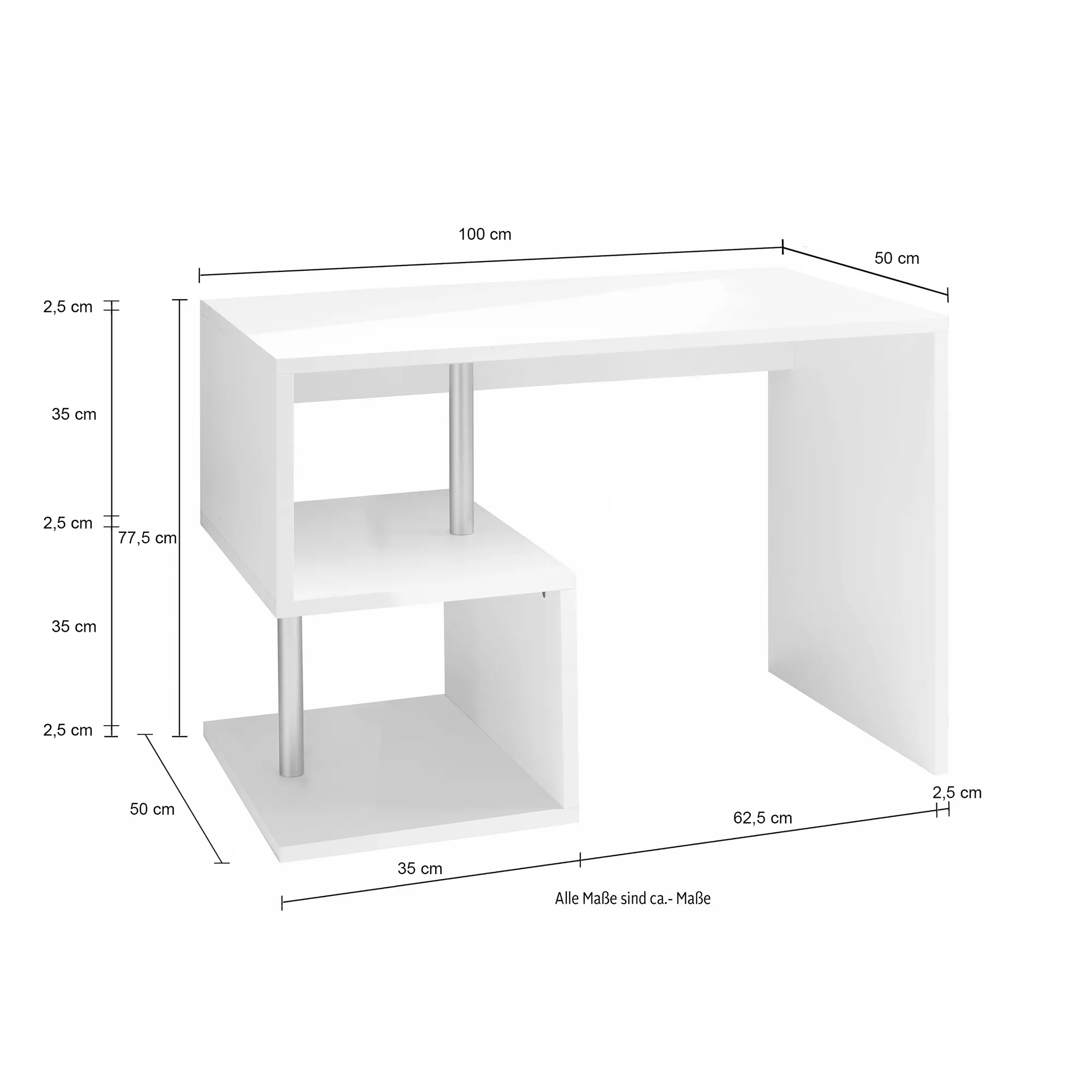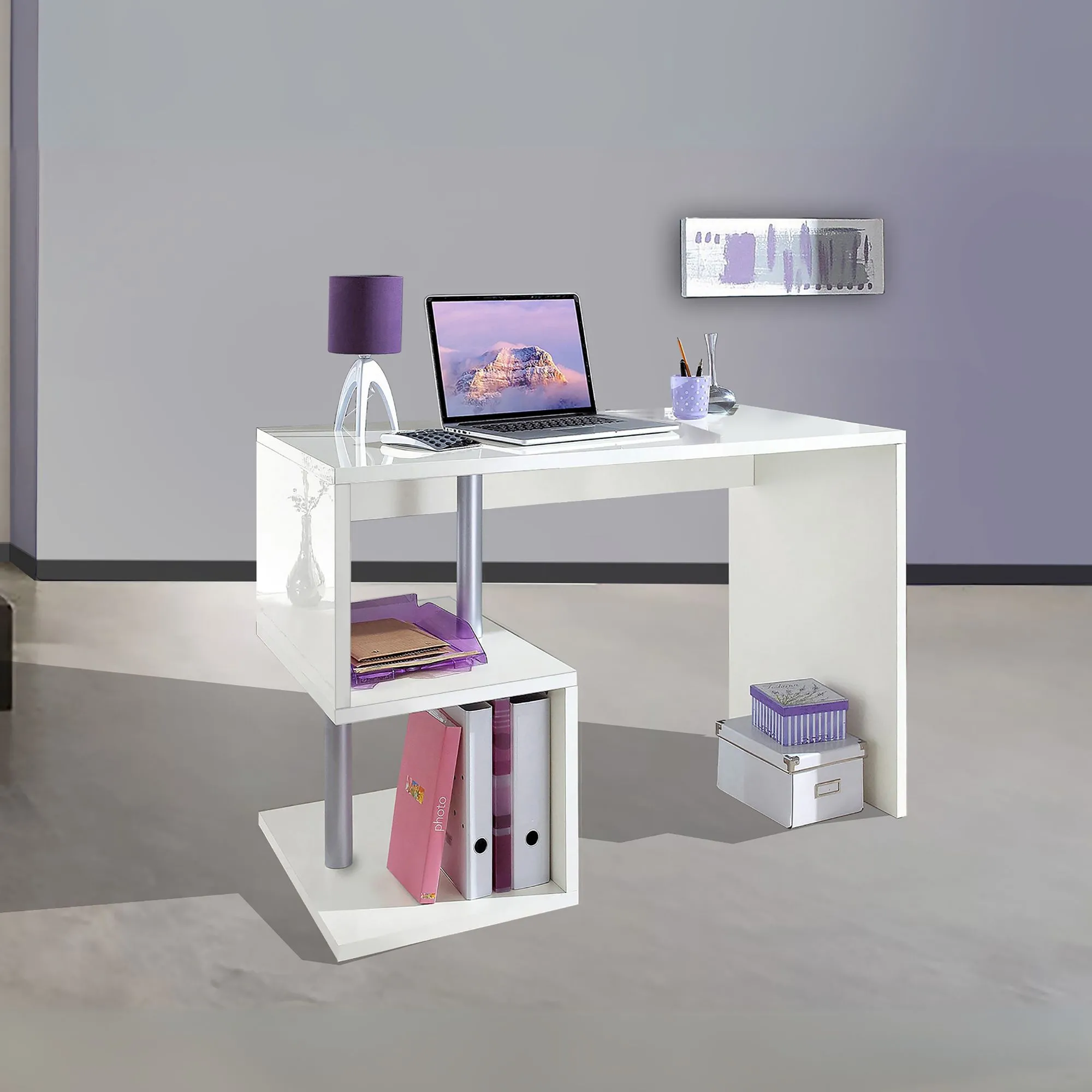 Scrivania 100x50x77,5 cm Bianco Laccato Lucido Ripiani a S - Zeta