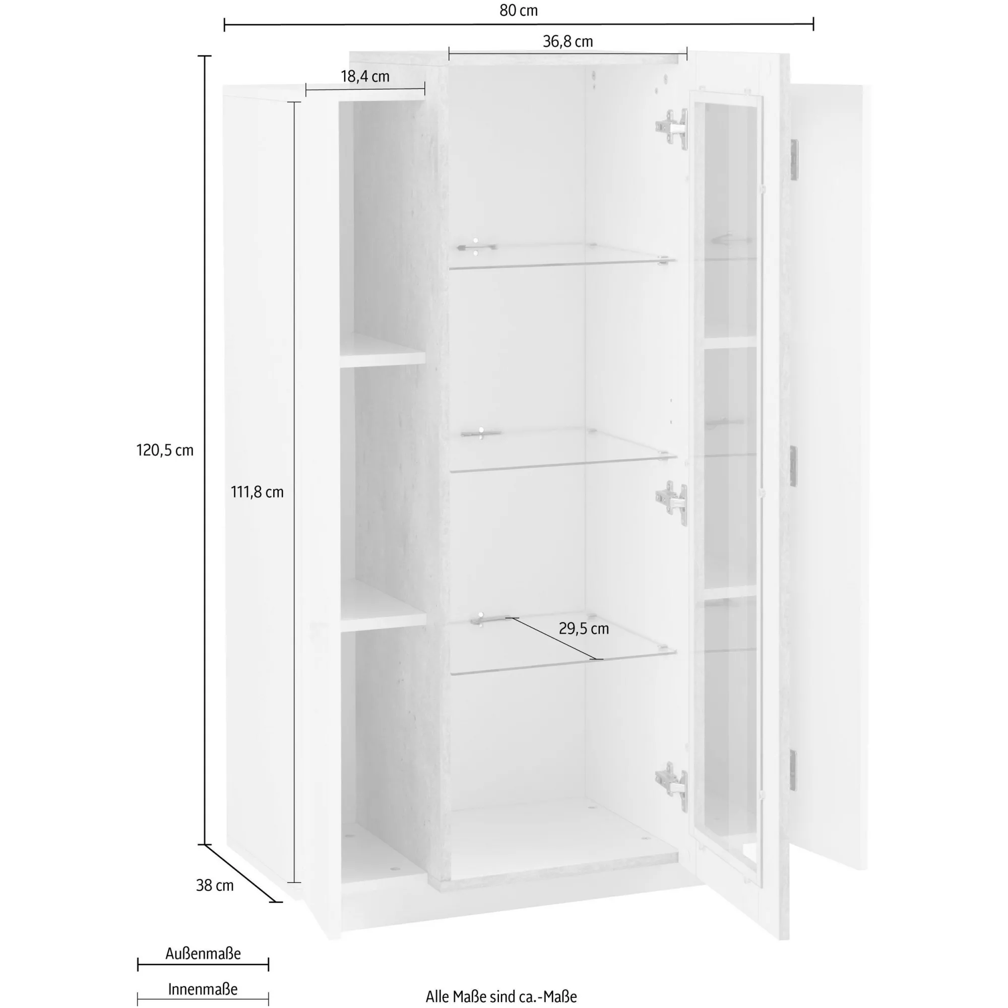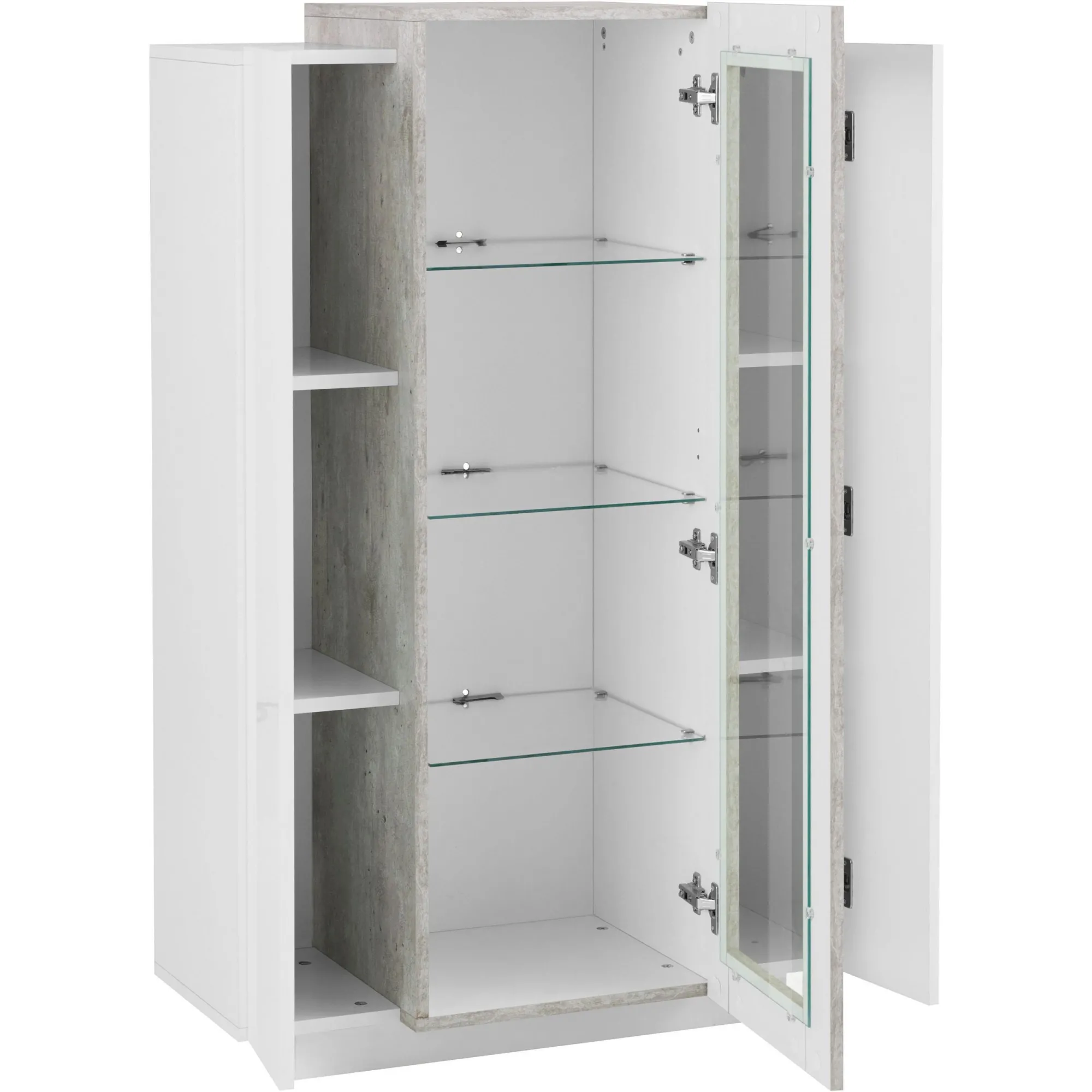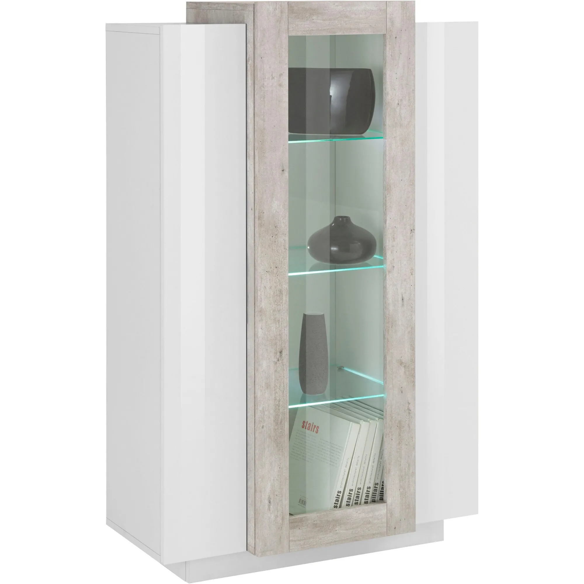 Vetrina 80x120,5x38 cm Bianco Laccato Lucido/Cemento Anta Centrale in Vetro per Soggiorno Moderno - Band