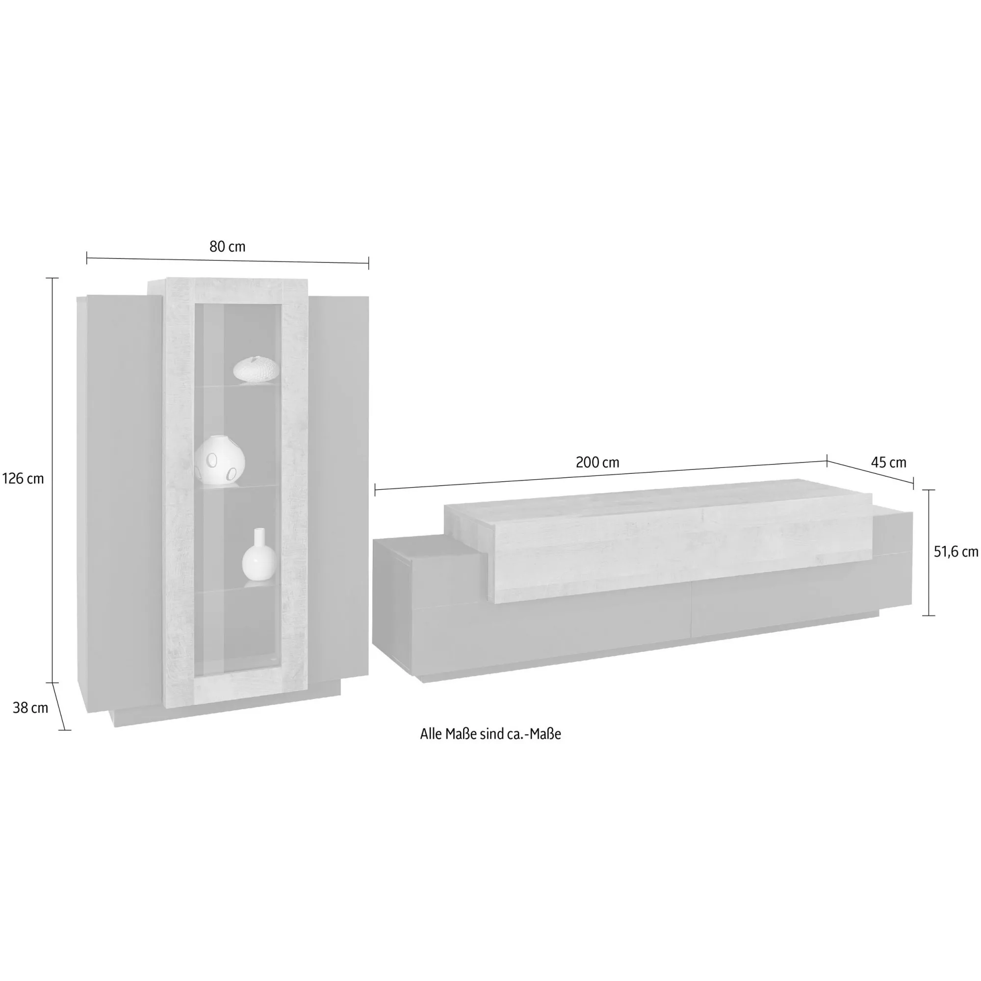 - Dimensioni mobile porta TV: 200 x 45 x 51,6 cm (LxPxA)