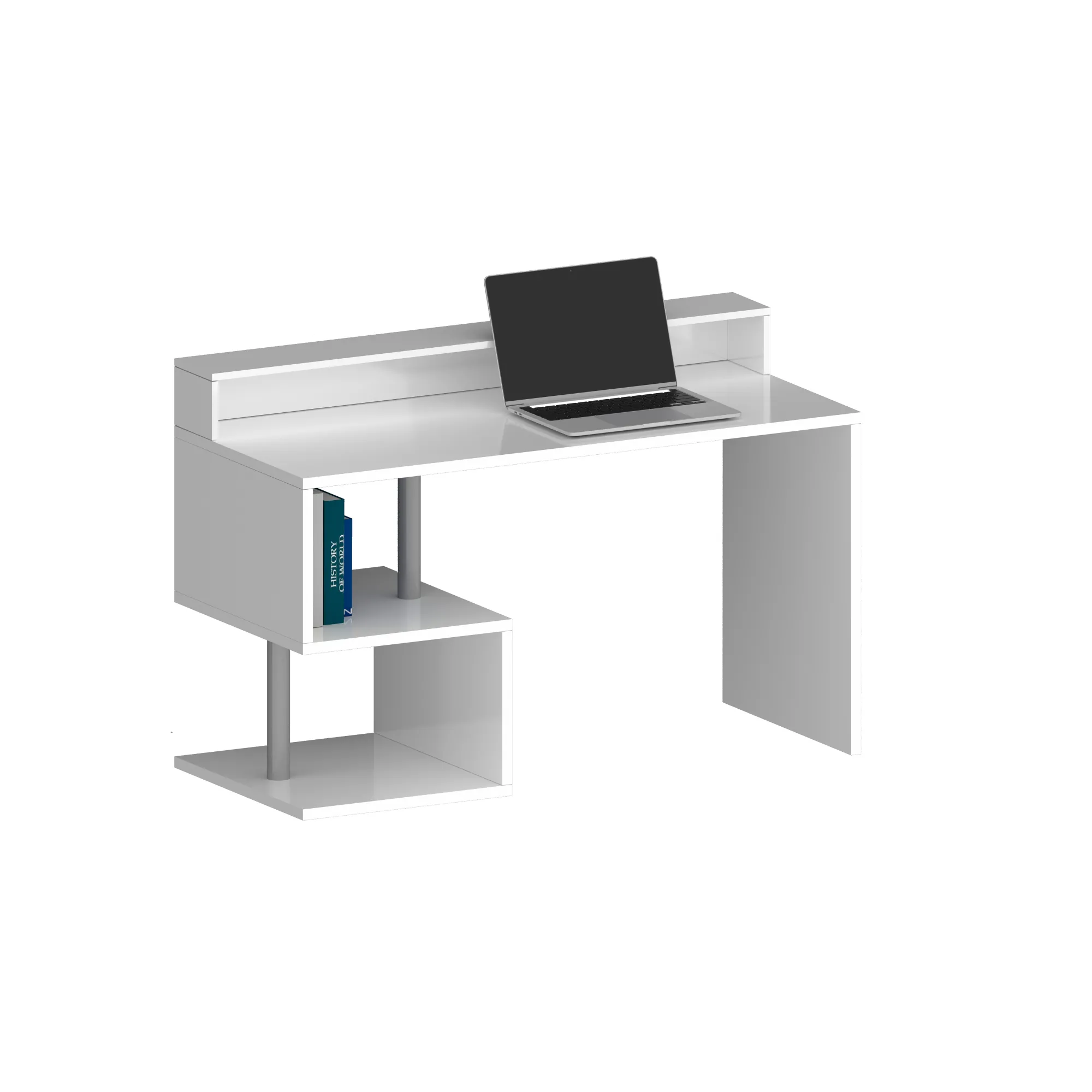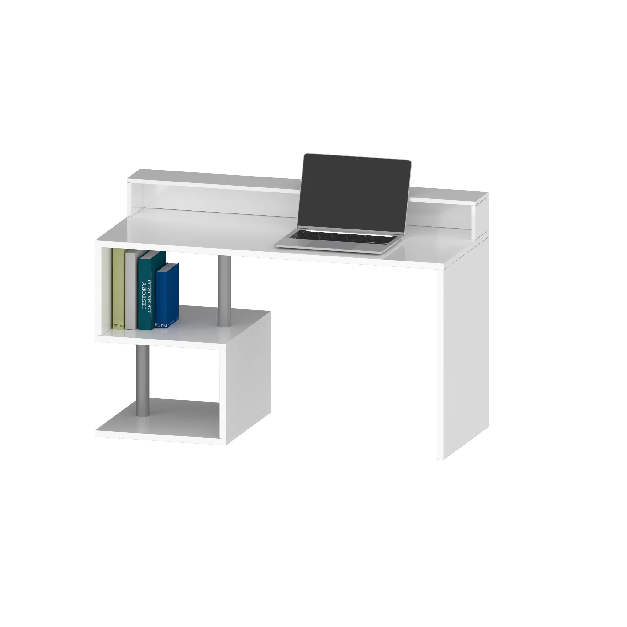 Scrivania con Alzata Ufficio 140x60x92.5 cm Bianco Laccato Lucido Design Moderno - Zeta