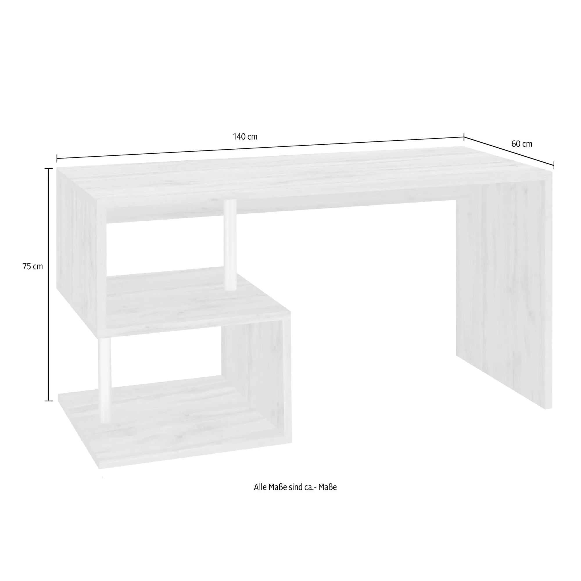- Dimensioni scrivania: 140 x 60 x 78 cm (LxPxA)