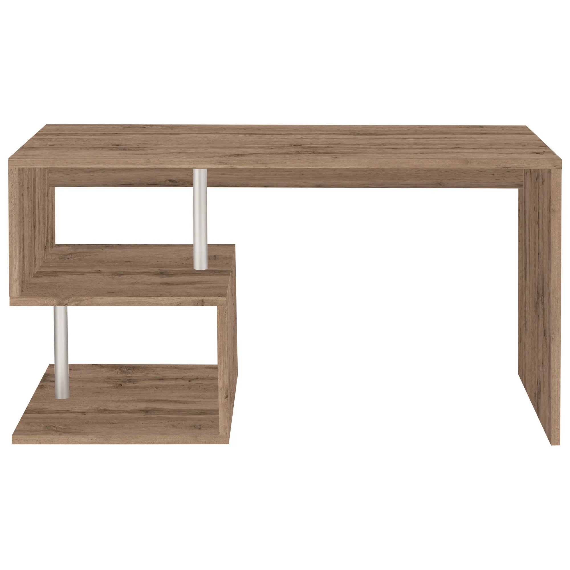 Il piano di lavoro della scrivania ZETA offre ampio spazio per posizionare un computer portatile, consentendo di lavorare da casa in modo efficiente. Realizzata in legno nobilitato con superficie in melaminico di 25 mm di spessore, la struttura è dotata di due pratici piani di appoggio per organizzare documenti e cancelleria, mantenendo il ripiano principale libero e ordinato.