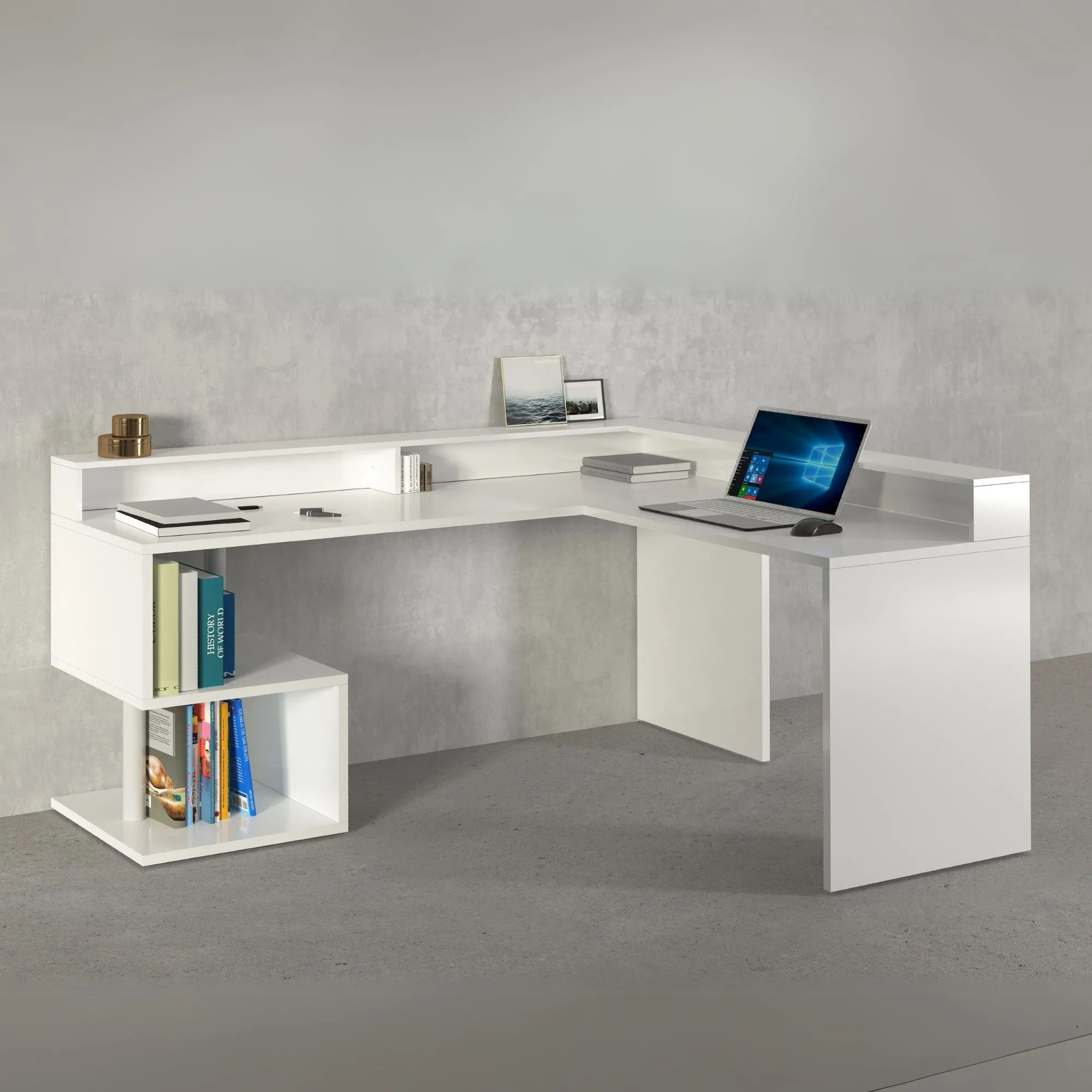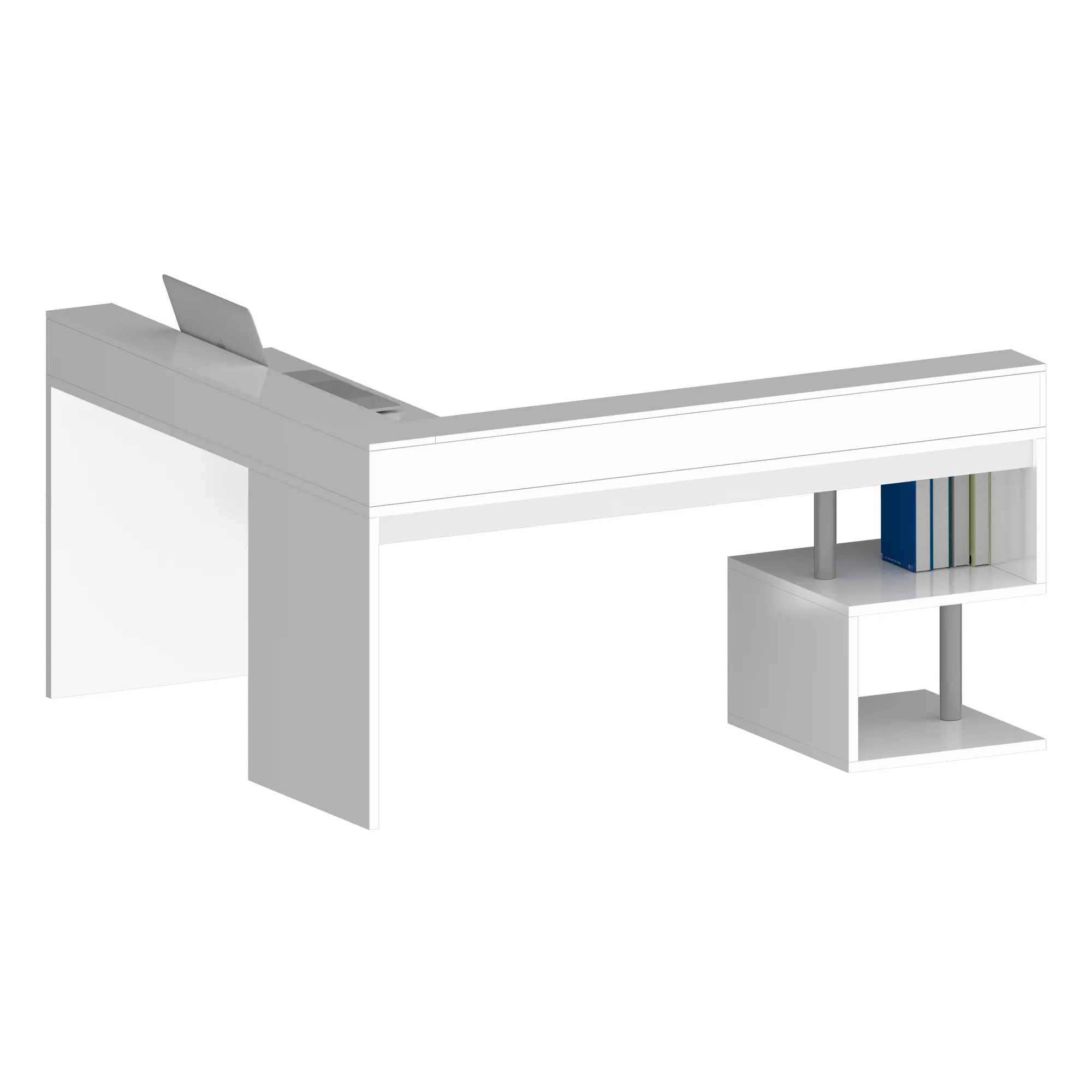 Scrivania Ufficio angolare 180/160x60x92.5 cm Bianco Laccato Lucido con Design Moderno - Zeta