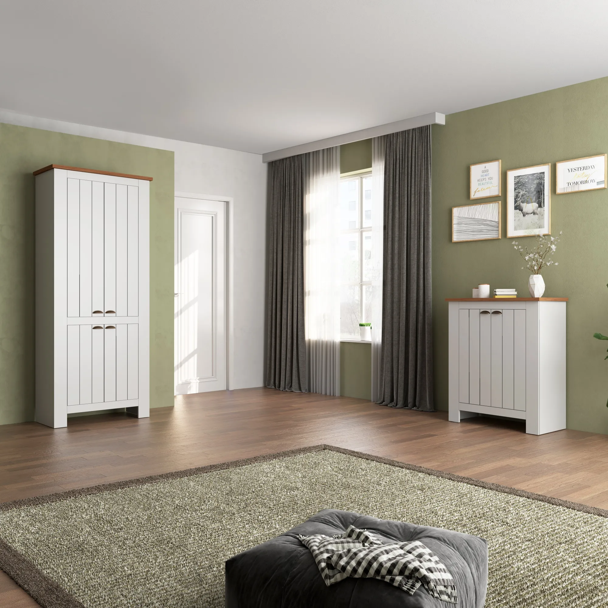 Scarpiera 84x41.8x200 cm Bianco Ante Serigrafate/Rovere Wotan - Complementi d'Arredo Eleganti - Fantasy