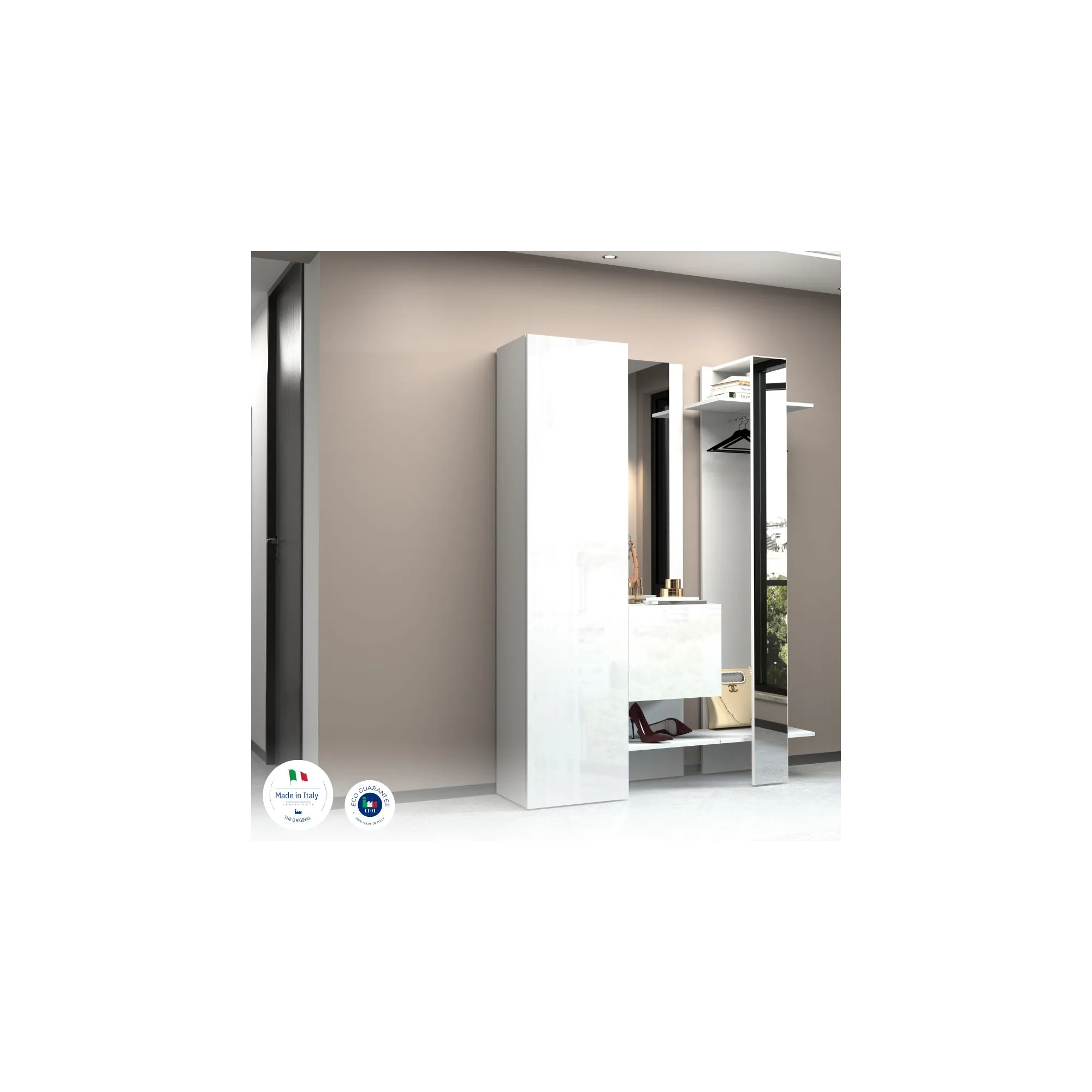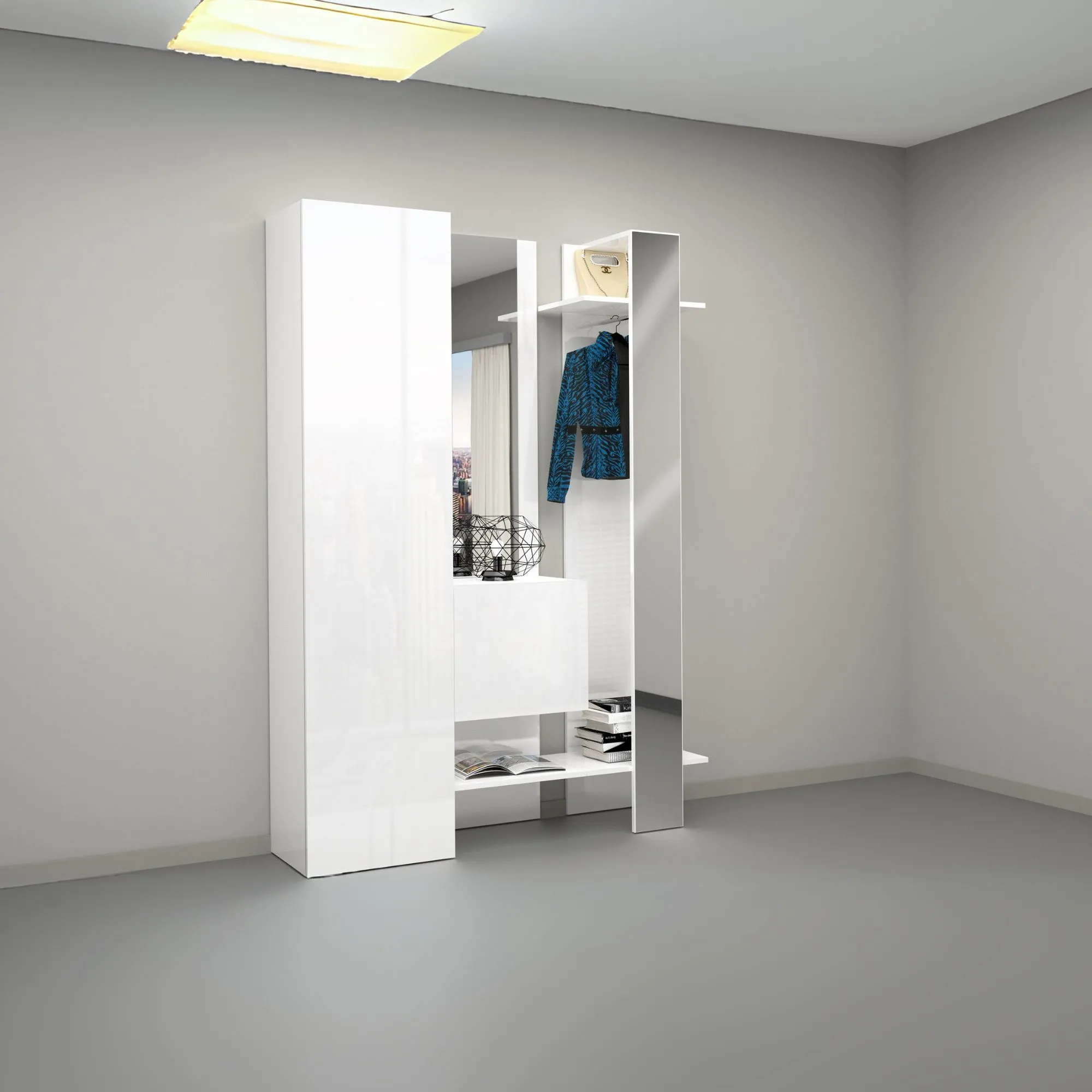 Mobile da Ingresso 140x35x191 cm Bianco Laccato Lucido con 2 Specchi Design Moderno - Harmony