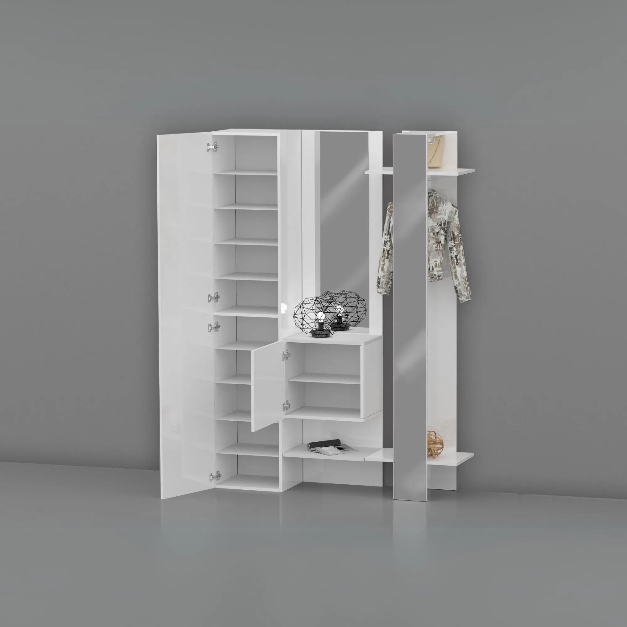 Il Set ingresso HARMONY è ideale per chi cerca una soluzione spaziosa e capiente per organizzare scarpe, indumenti e oggetti in modo ordinato e facilmente accessibile. Con la capacità di contenere fino a 24 paia di scarpe, questo set è la scelta perfetta per chi desidera un ingresso elegante e pratico.