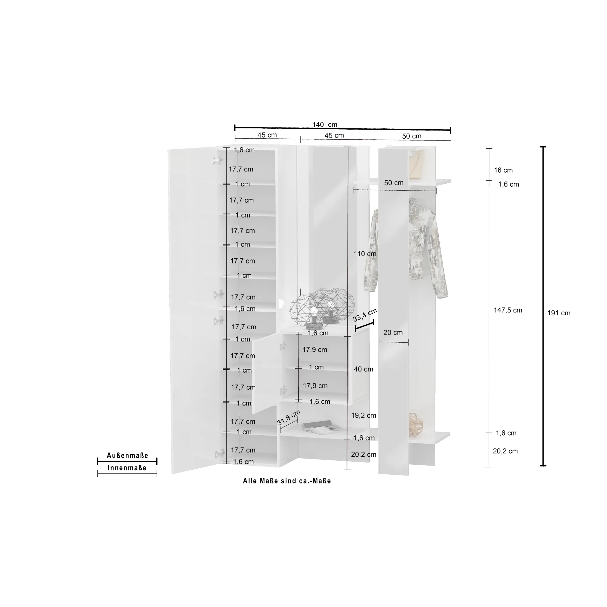 Scopri il Set ingresso HARMONY, una soluzione elegante e funzionale per il tuo ingresso. Con dimensioni di 140 x 35 x 191 cm, questo set robusto e Made in Italy è realizzato con legno riciclato e offre un design moderno. Include 12 ripiani interni, 1 asta appendiabiti e 2 specchi integrati, perfetti per organizzare fino a 24 paia di scarpe e indumenti. Facile da montare con istruzioni chiare, il set è certificato FSC® su richiesta, garantendo un acquisto sostenibile. Acquista ora per un ingresso accogliente e ben organizzato.