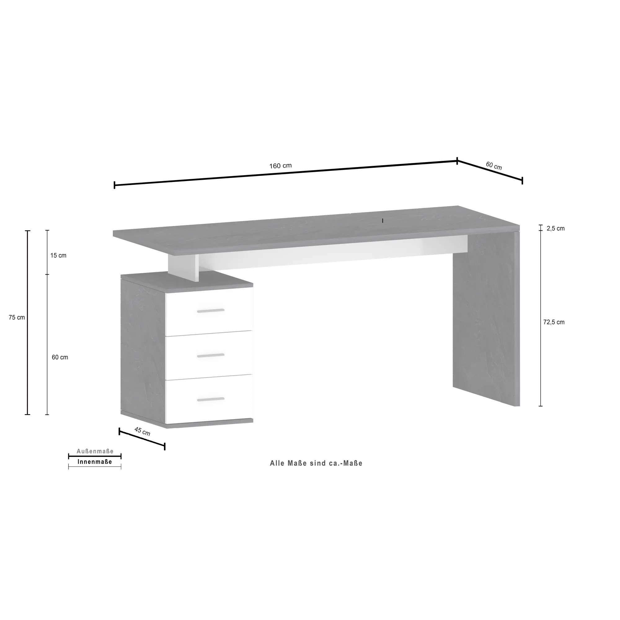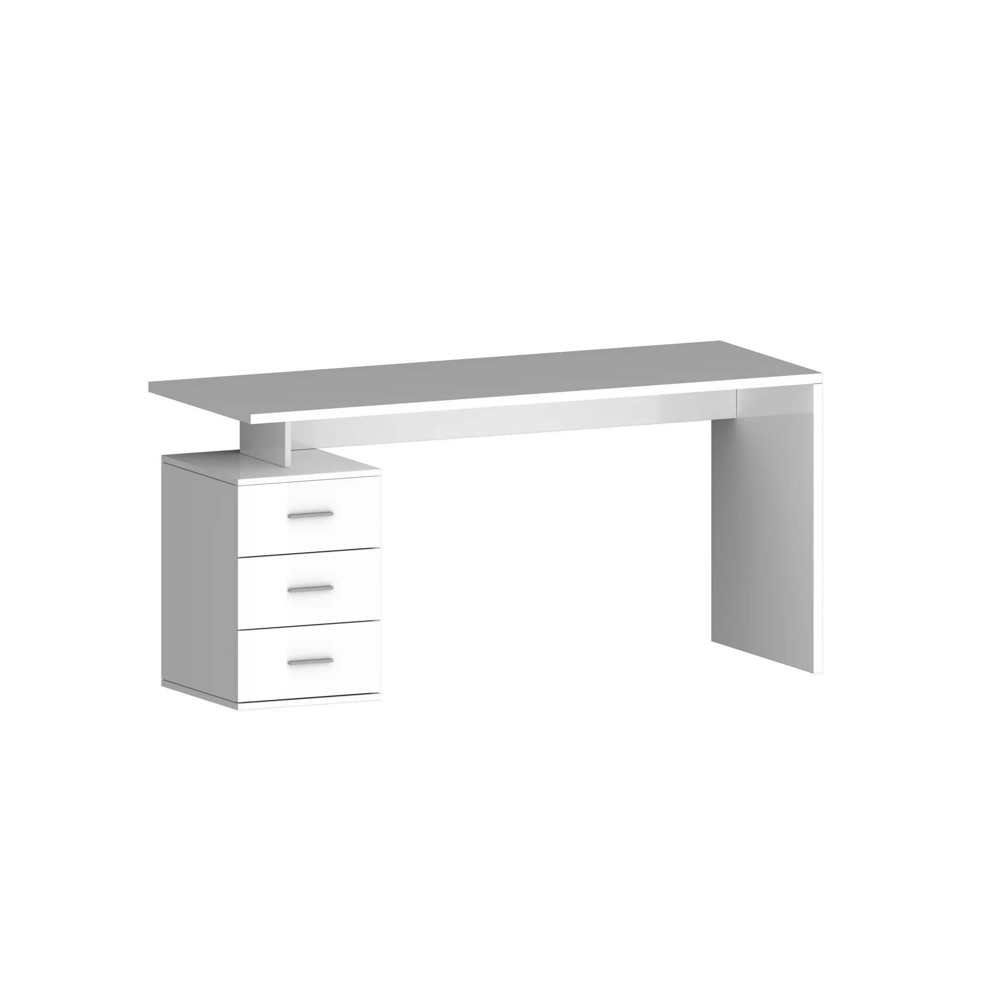 Scrivania Ufficio con Cassettiera Integrata 160x60x75 cm Bianco Laccato Lucido con Design Moderno - New Luna