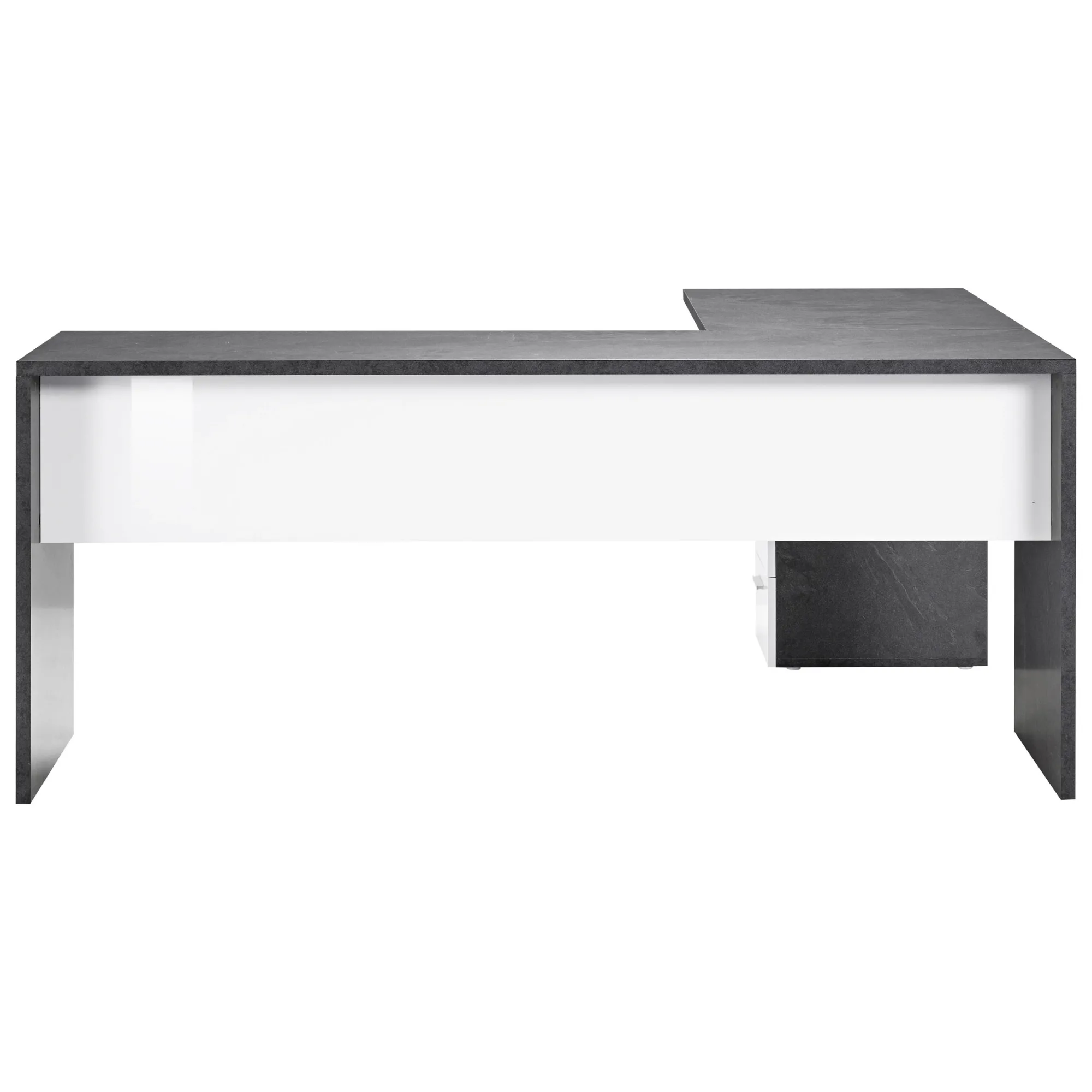Scrivania Angolare 180x160 cm Finitura Report e Bianco Laccato Lucido con Cassettiera 3 Cassetti - New Luna