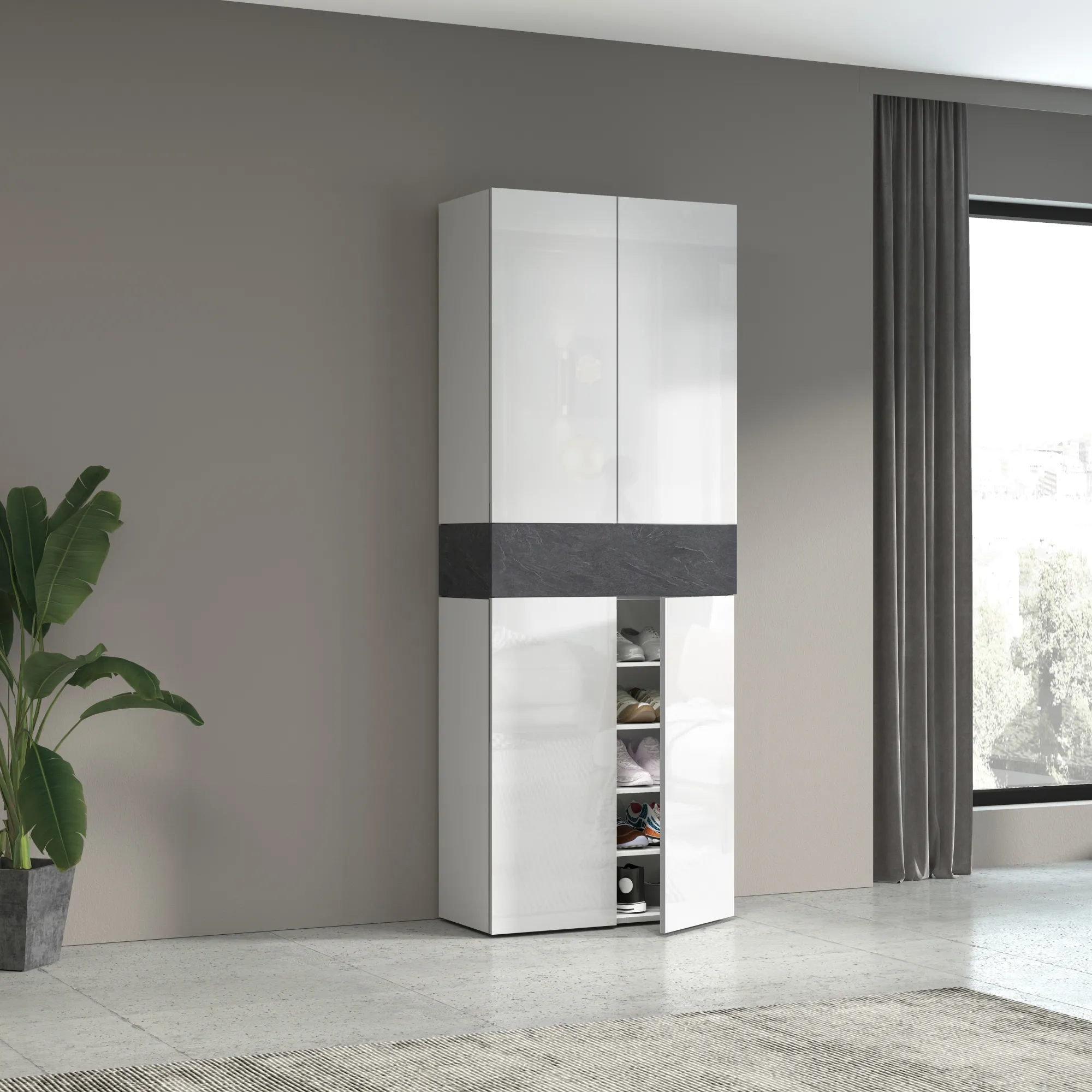 Scarpiera L.76xP.35xH.200 cm Bianco Laccato Lucido con Report Elegante e Funzionale - Velvet