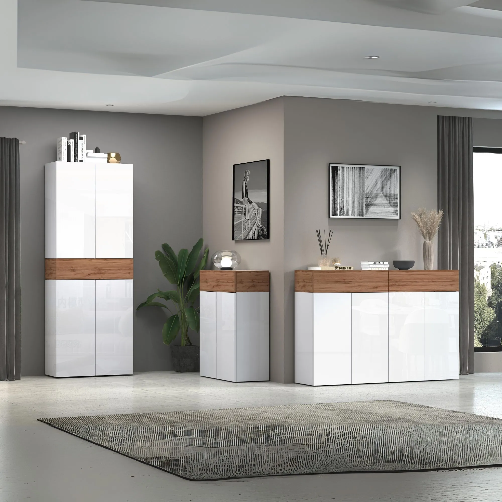 Scarpiera 76x35x200 cm Bianco Laccato Lucido/Rovere Wotan con Design Moderno - Velvet