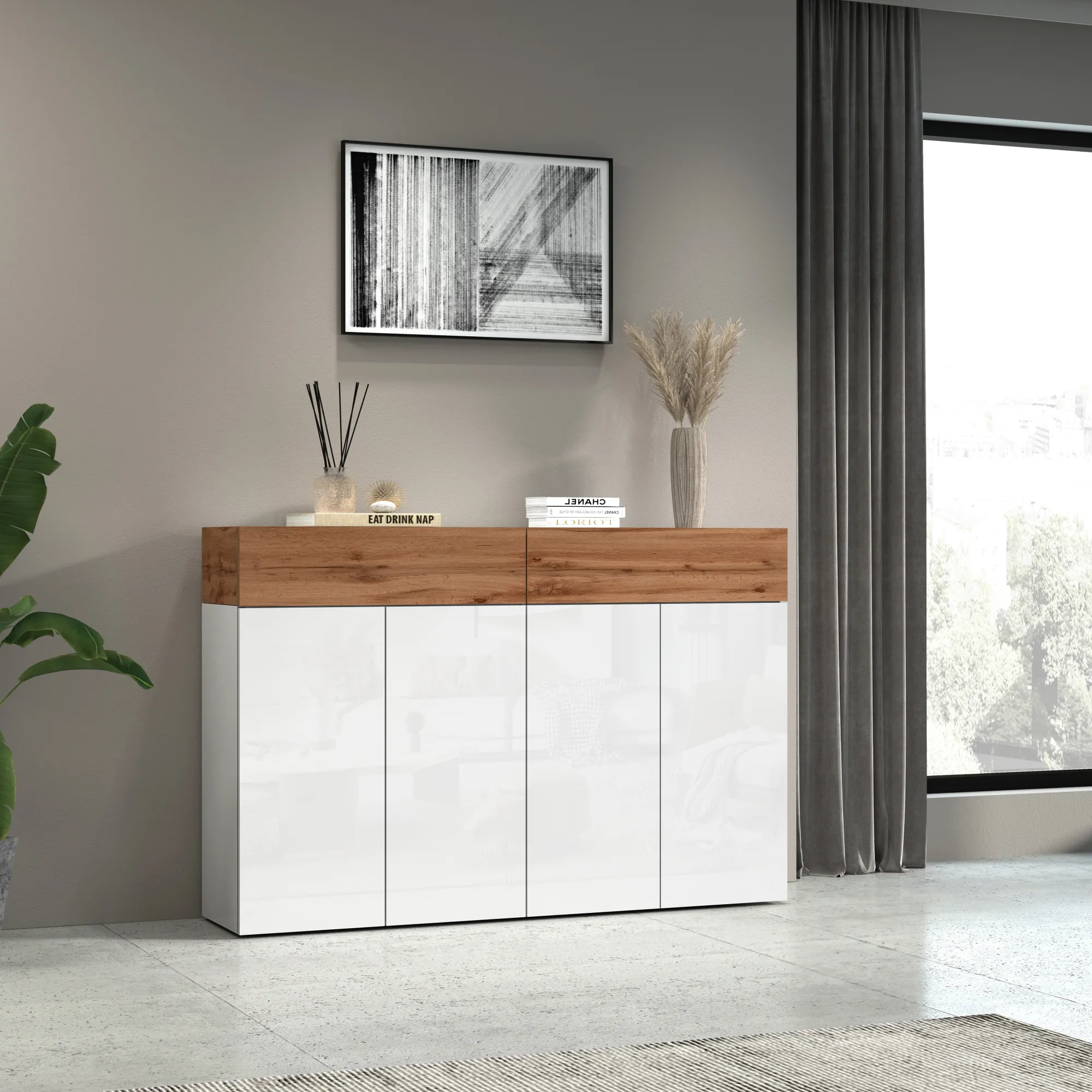 Scarpiera 152x35x100 cm Bianco Laccato Lucido/Rovere Wotan con Design Moderno - Velvet