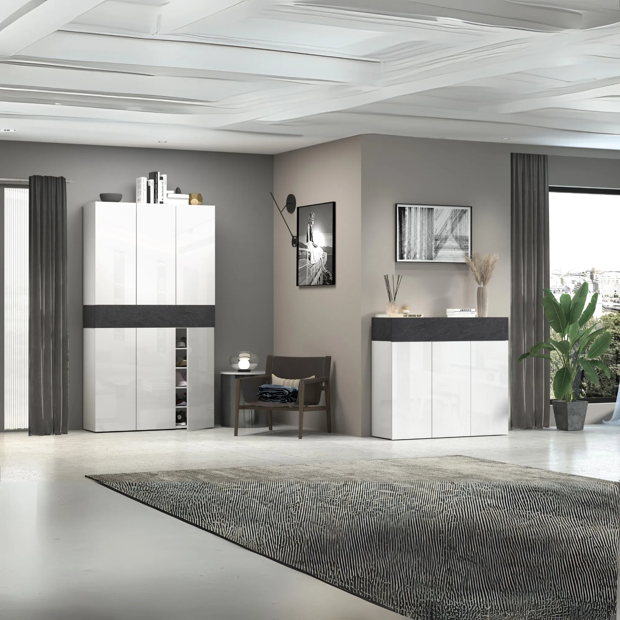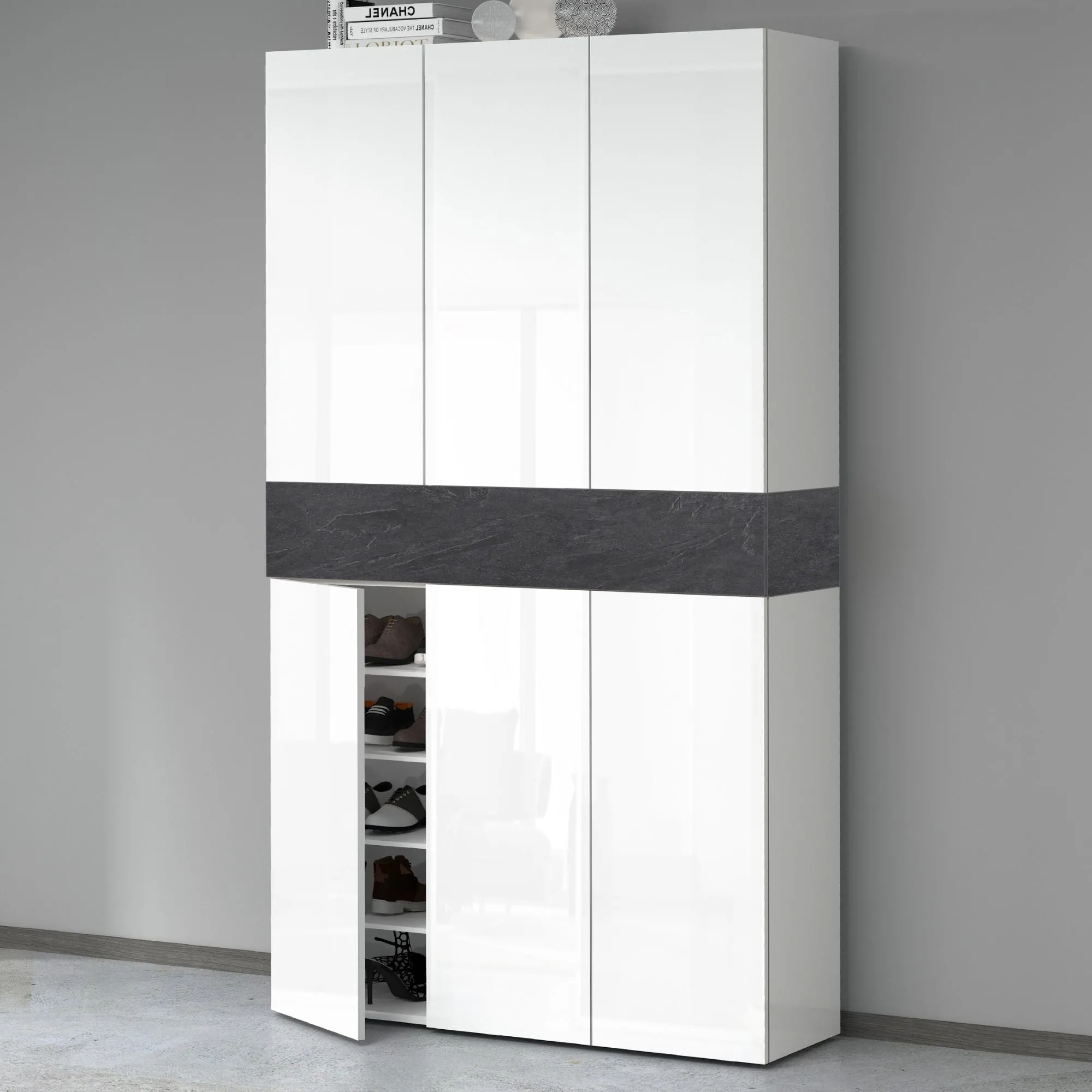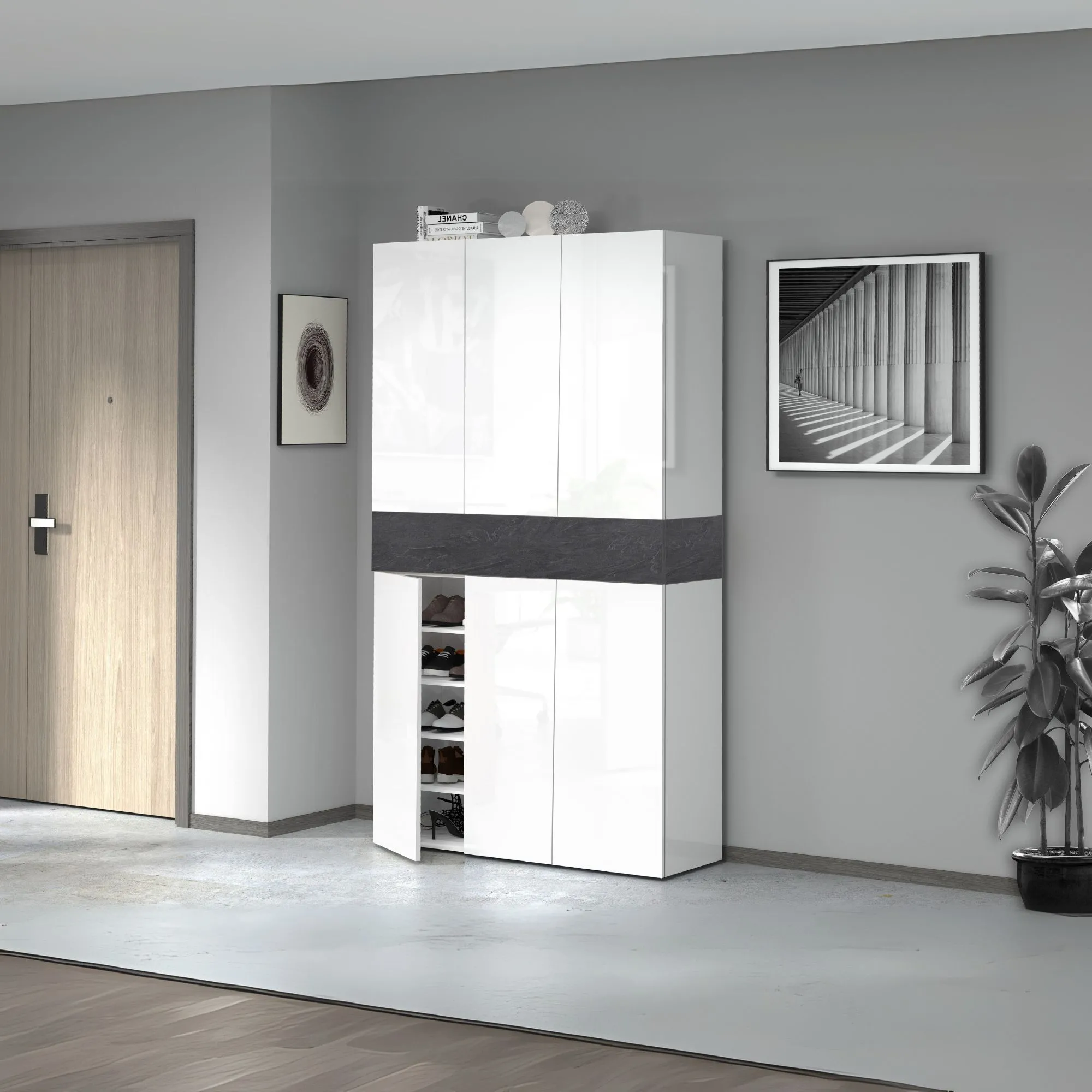 Scarpiera 114x35x200 cm Bianco Laccato Lucido con Report: Eleganza e Funzionalità - Velvet
